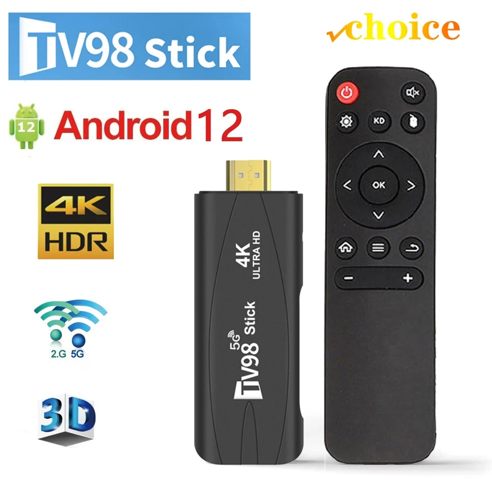 Comprar TV98 Mini TV Stick Android 12 compatible con vídeo 4K Wifi 6 3D TV Box 2,4G y 5G sensación corporal juego decodificador 2GB 16GB TV Box