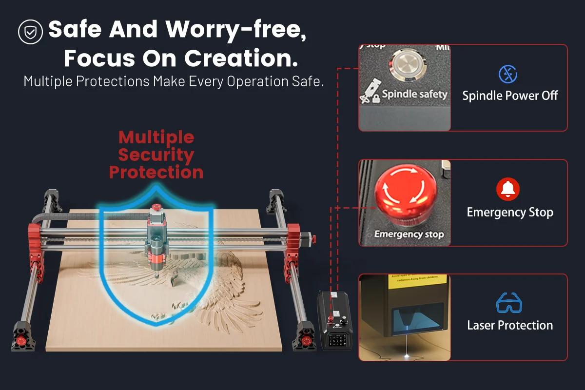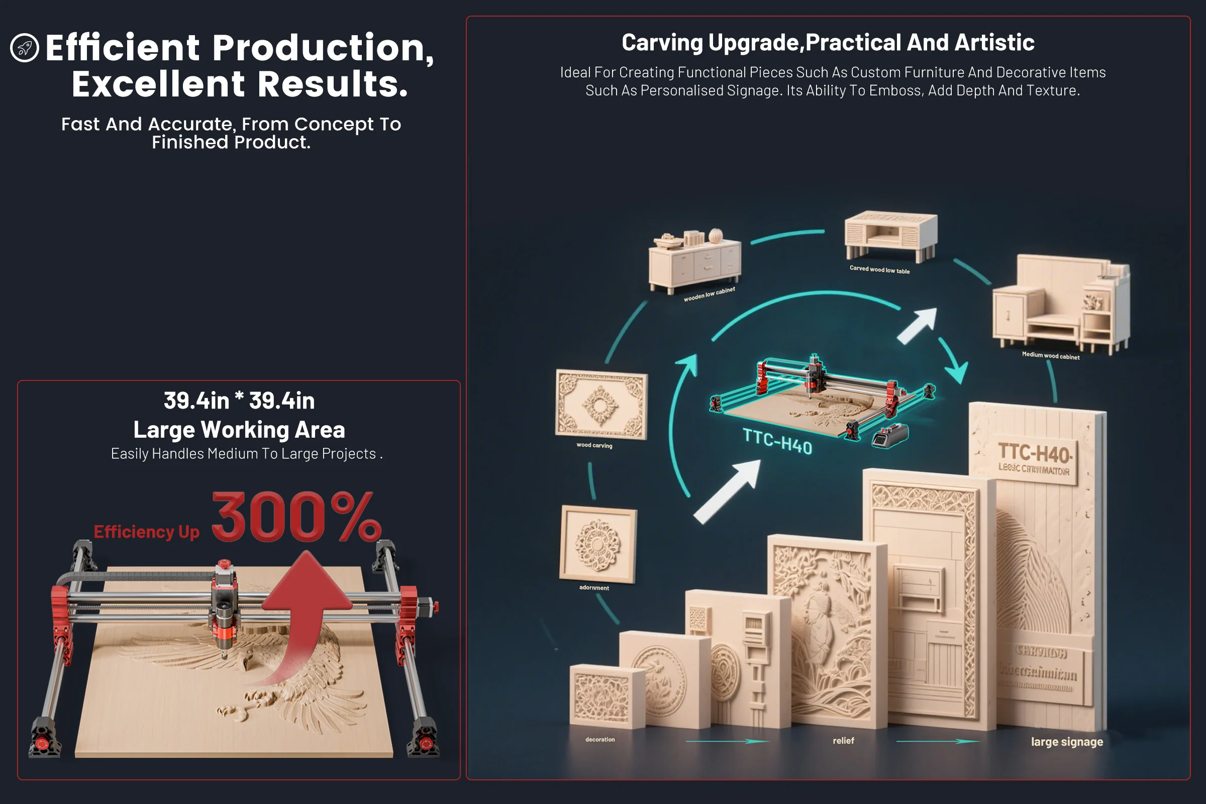 F. Tamaño de grabado: esta máquina de grabado CNC a nivel de escritorio proporciona una flexibilidad incomparable con su excelente área de grabado de 1 metro × 1 metro.Puede adaptarse a una variedad de necesidades de tallado, ya sea una excelente producción artesanal o proyectos de diseño a gran escala, puede manejarlo fácilmente.Su amplia aplicabilidad lo hace ideal para creadores y profesionales de todo tipo.