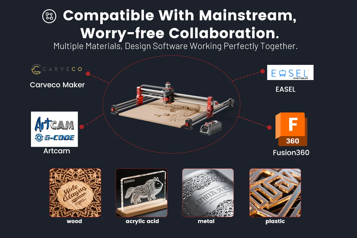 Parámetros de compatibilidad Software de programación Artcam, Fusion360, EASEL, Carveco Maker, etc.