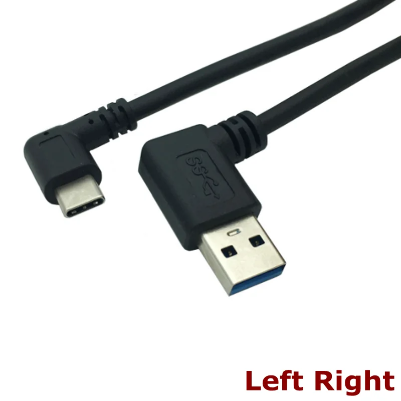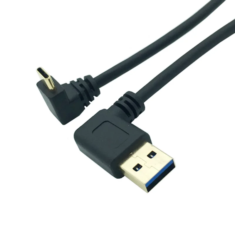 USB 3,0 Tipo-C ángulo recto Lado izquierdo curvo computadora portátil teléfono móvil conexión de carga línea de datos 1 metro