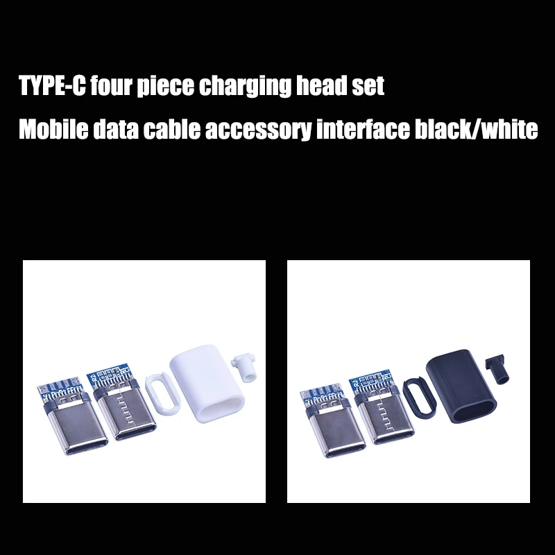 Comprar TYPE-C macho de Cuatro piezas, cabezal de carga CC, accesorios de Cable de datos móvil, interfaz, Conector de enchufe negro/blanco, cabezal de prueba