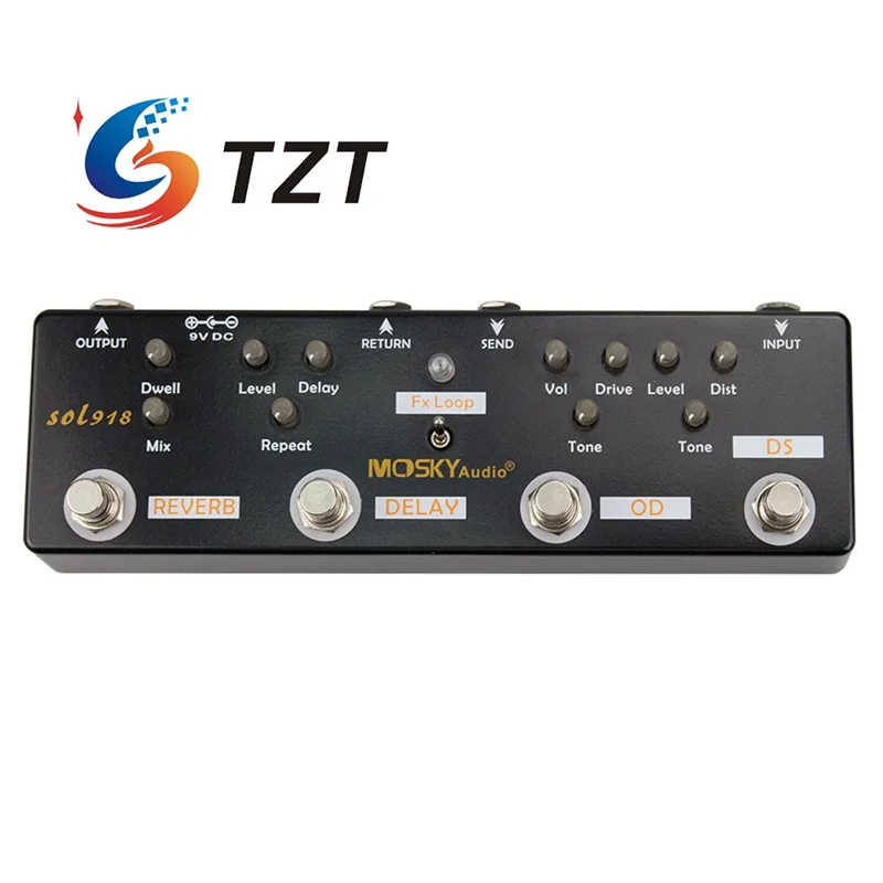 TZT MOSKYAudio SOL918 Pedal multiefectos 5 en 1 (Distorsión + Overdrive + Delay + Reverb + FX Loop)