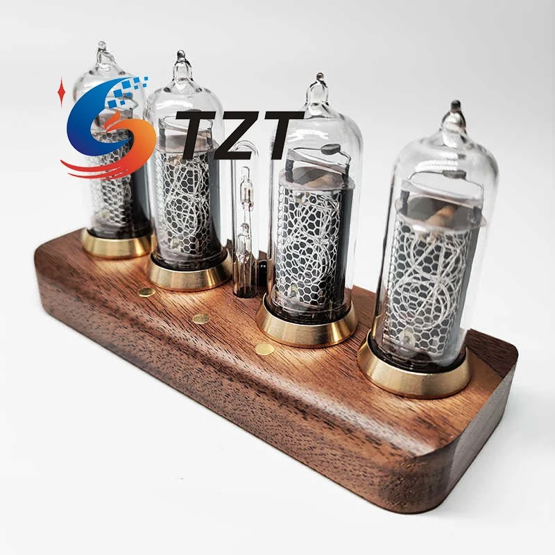 TZT Black Walnut Version IN14 Retro Glow Tube Clock 4-Bit Bluetooth Control Nixie Tube Clock Support Brightness Adjustment