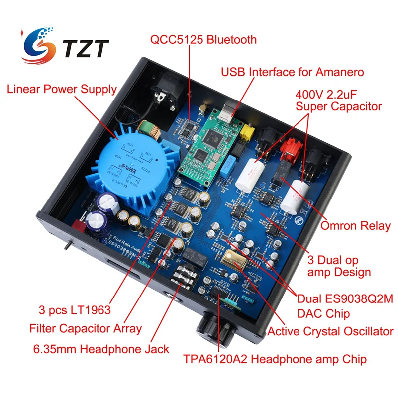 TZT DA10 700MWx2 Headphone Amplifier BT5.1 Bluetooth DAC ES9038Q2M for LDAC With/Without USB Audio Interface