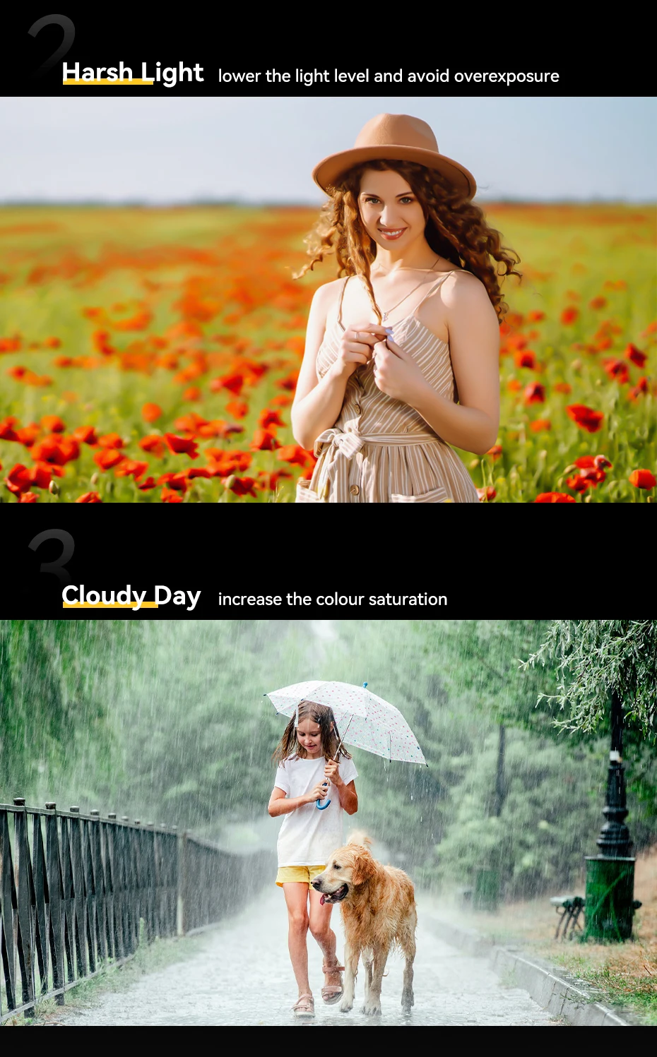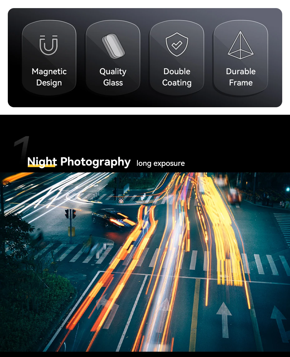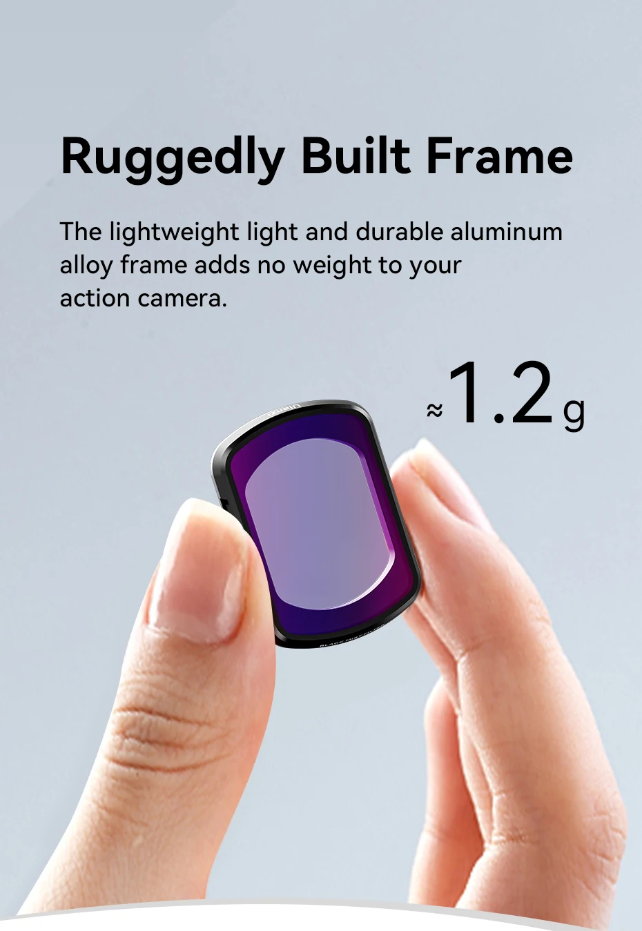 Con el kit profesional de filtros ND, puede obtener un control de exposición correcto en diferentes condiciones de iluminación y producir imágenes fluidas.
