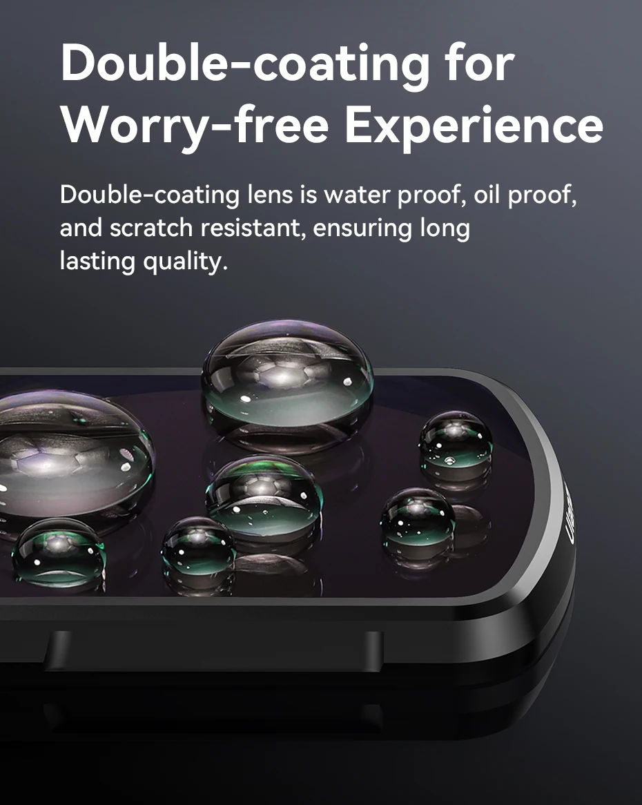 Doble recubrimiento para una experiencia sin preocupaciones: La lente de doble revestimiento es resistente al agua, al aceite y a los arañazos, lo que garantiza una calidad duradera.