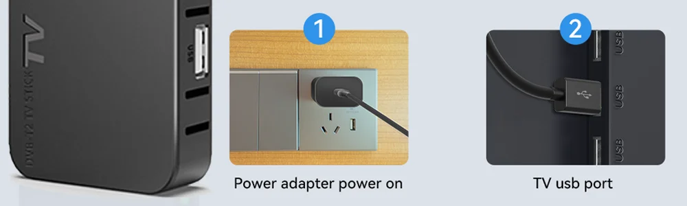 3. dos formas de encender Hay: Use USB para conectarse directamente al televisor; use Enchufe europeo de 5V para conectarse a la alimentación.