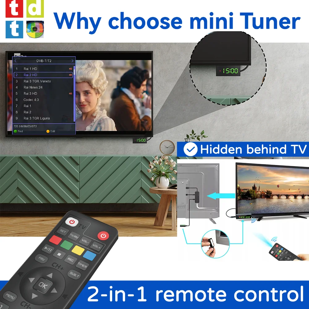 Comprar U3mini TDT Decoder TDT DVB T2/C TV Tuner Full HD 1080p H.265 HEVC Dolby AC3 MPEG-2/4 Digital Terrestrial Receiver Mini TV Box