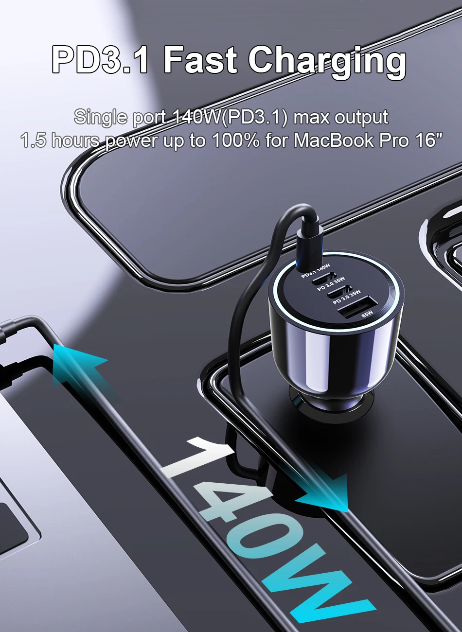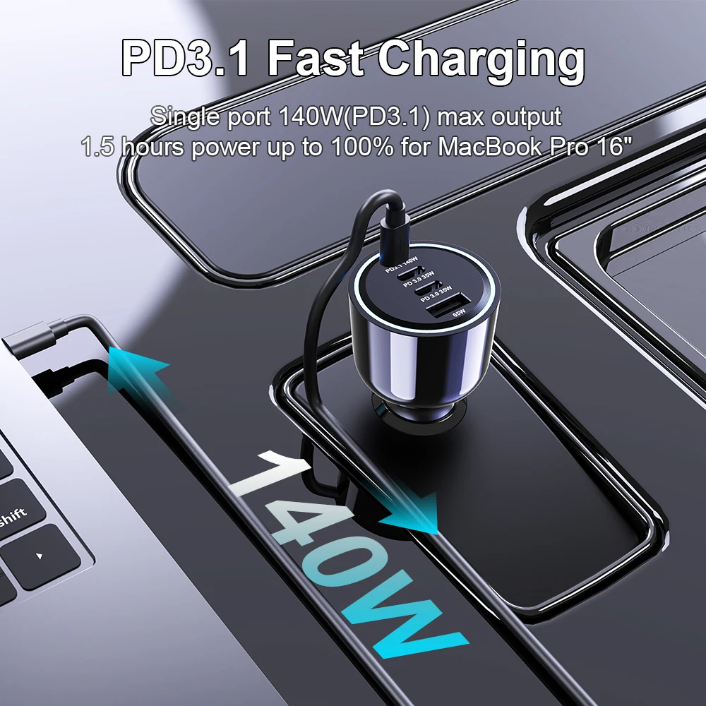 Salida máxima de puerto único de 140 W (PD 3.1), 1,5 horas de alimentación hasta el 100% para MacBook Pro 16".