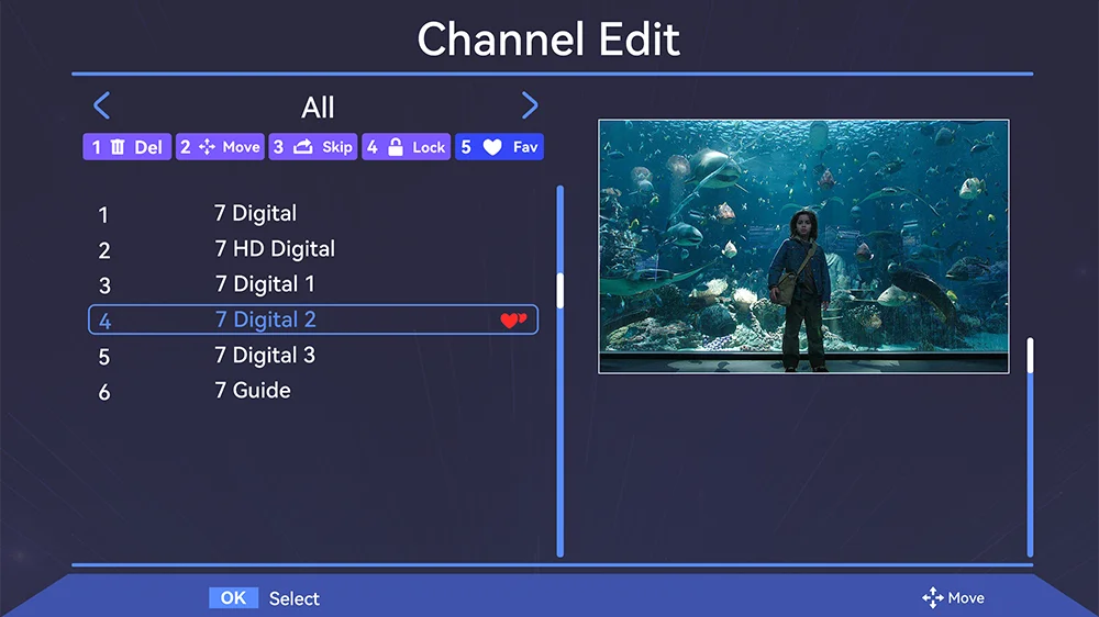 R: Abra la configuración de energía/abra LCN/elija el país y el idioma correctos/use un potenciador de señal/antena de movimiento.