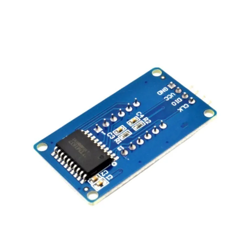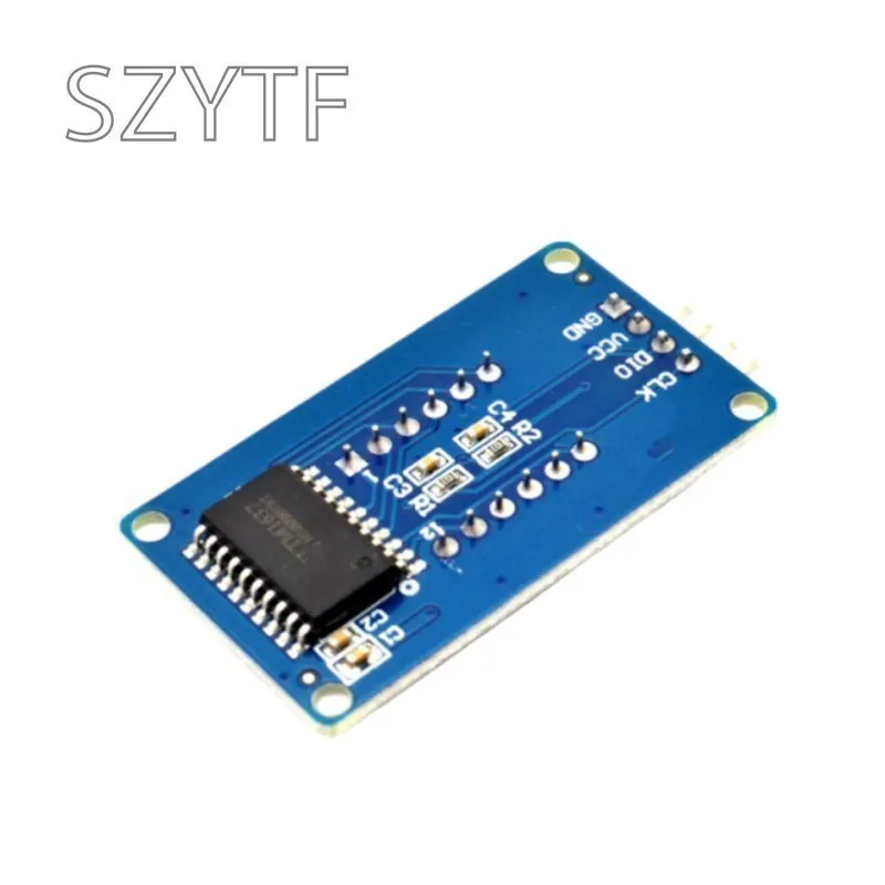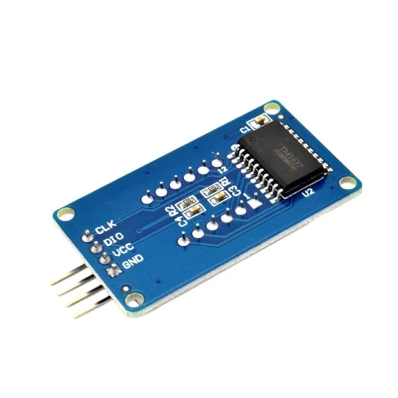 Interfaz de control Un total de 4 pines (GND, VCC, DIO, CLK), GND está conectado a tierra, VCC es la fuente de alimentación, DIO es el PIN de entrada y salida de datos, CLK es el PIN de señal de reloj;