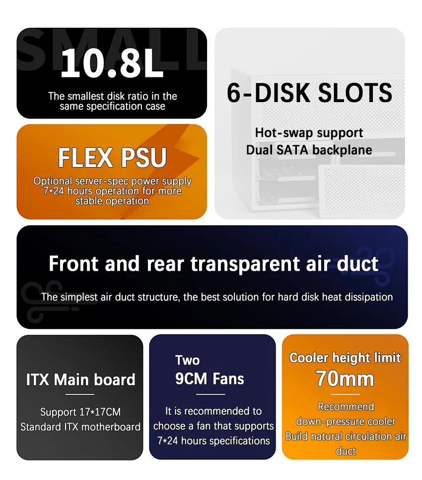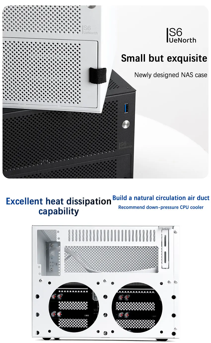Comprar UENORTH UE-S6 chasis NAS de seis ranuras placa base itx servidor de almacenamiento de escritorio DIY caja pequeña con plano posterior compatible con intercambio en caliente