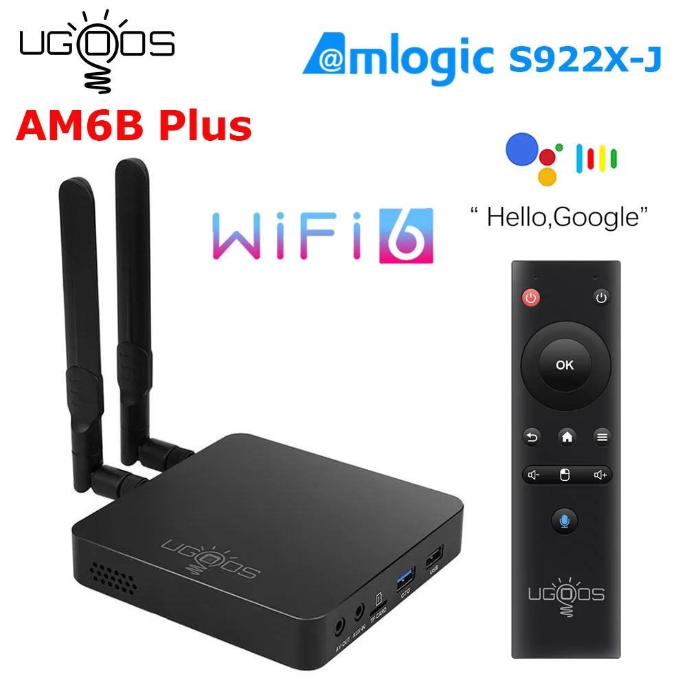 Comprar UGOOS-Dispositivo de TV inteligente AM6B Plus, decodificador con Android 9,0, Amlogic S922X-J, DDR4, 4GB de RAM, 32GB, WiFi6, 1000M, BT5.0, OTT, 4K, AM6 Plus