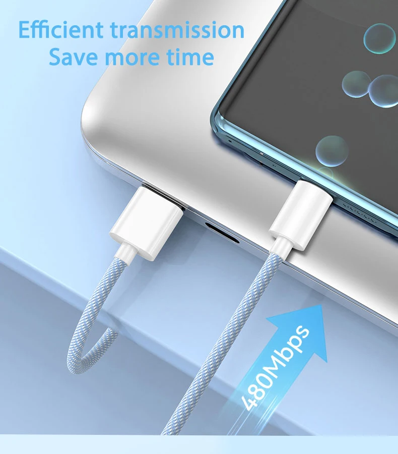 Este cable de carga rápida USB-C a USB C admite una velocidad de sincronización de hasta 480 Mbps.