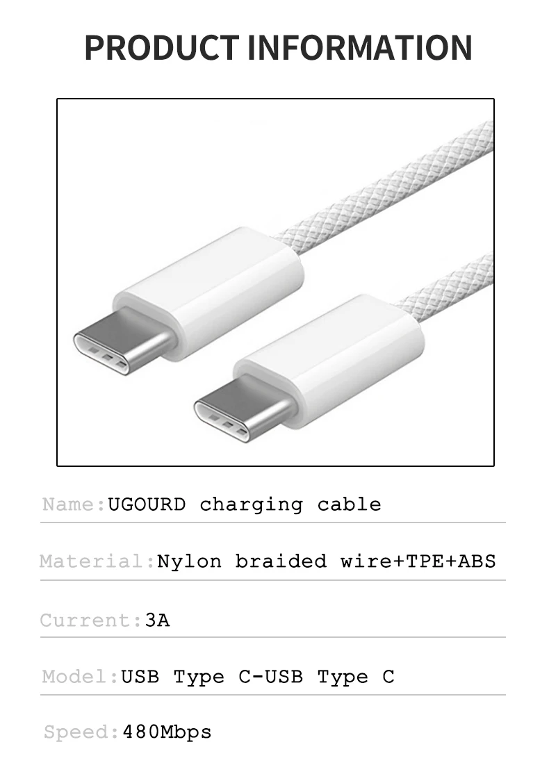 Comprar UGOURD PD 60W 20V3A tipo C a C Cable de carga rápida para iPhone 15 Pro Max USB C a USB C USB2 480Mbps para Samsung Huawei xiaomi