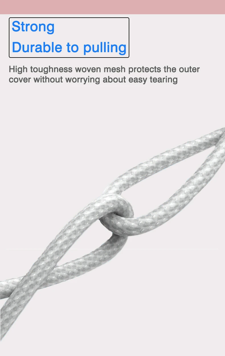 Los cables internos están bien envueltos y la malla tejida de nailon es apretada, resistente y duradera.