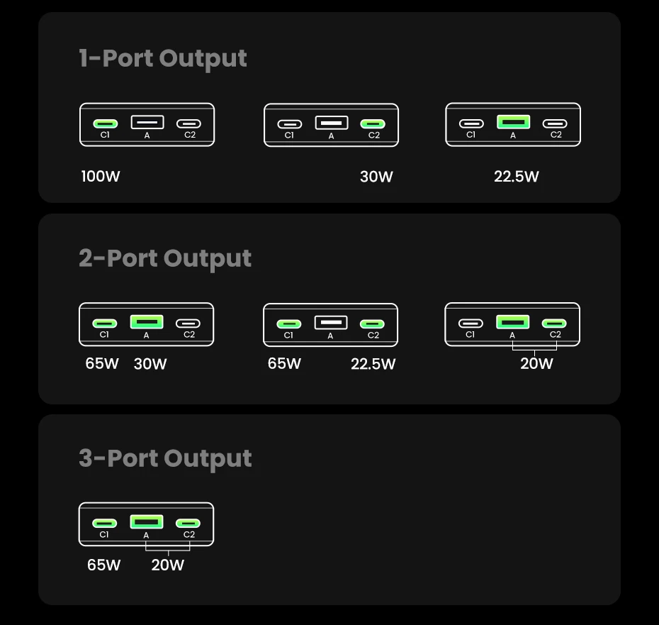 *Estos datos se obtienen con el cargador GaN UGREEN de 65w (entrada de puerto tipo c-1)