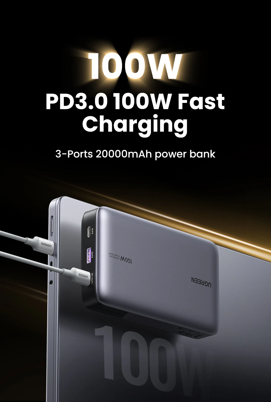 Comprar UGREEN 100W carga rápida batería externa banco de energía 20000mAh PD3.0 PowerBank para ordenador portátil iPhone 16 Pro Max carga rápida