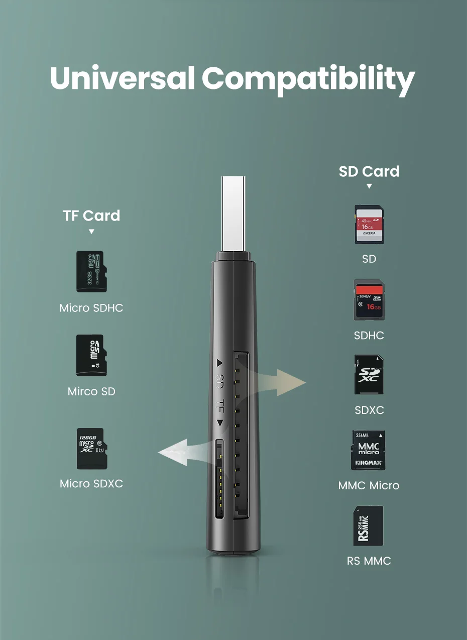 Comprar Ugreen 2 in 1 USB Card Reader USB to SD Micro SD TF Card Reader for Computer Laptop accesorios Smart Card Reader SD Card Reader
