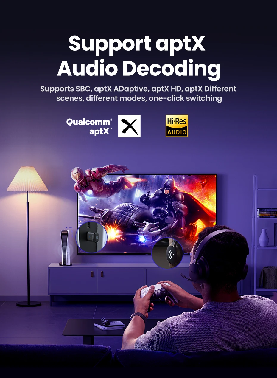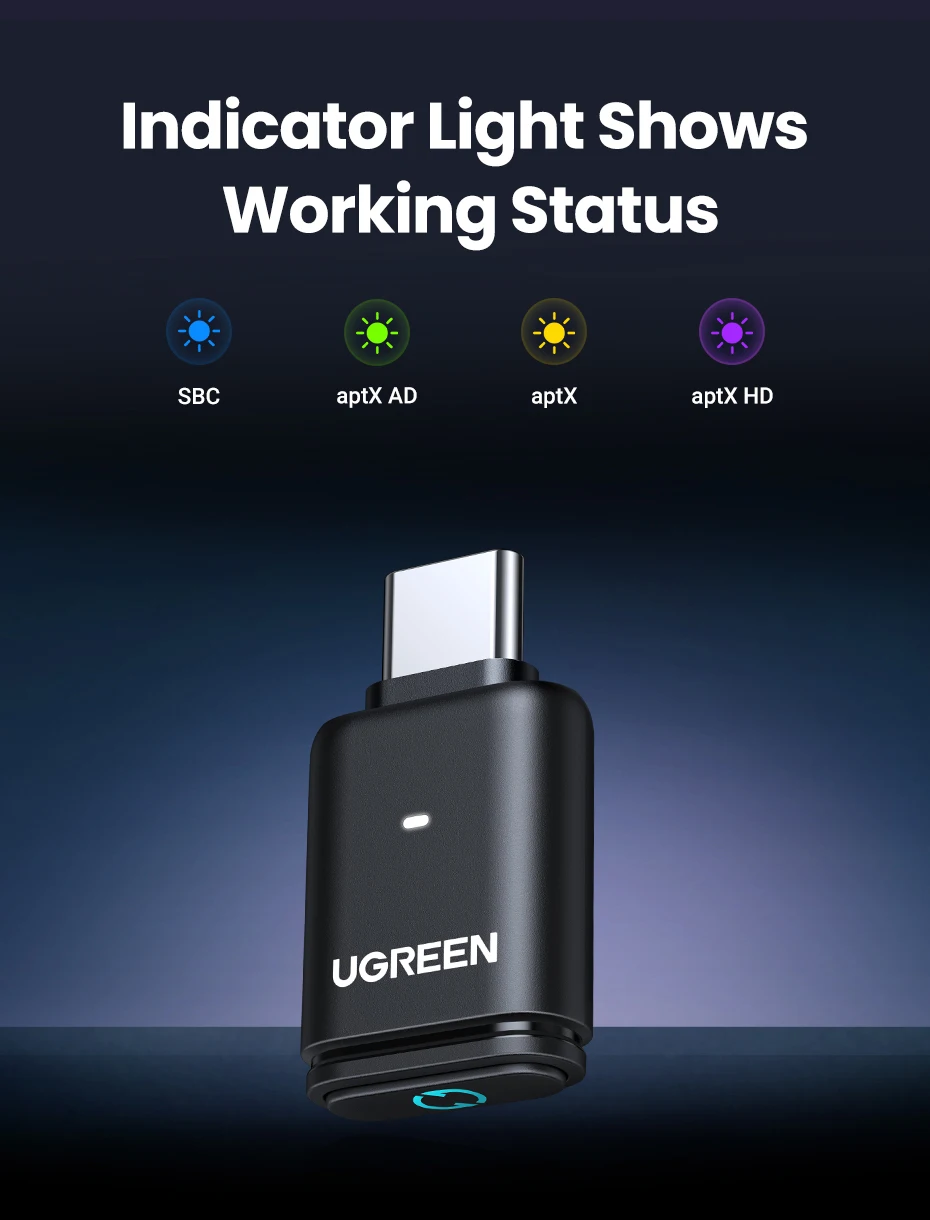 Comprar UGREEN-Adaptador de Audio aptX HD para PC Nintendo Switch, transmisor con Bluetooth 5,3, USB tipo C, micrófono y altavoz