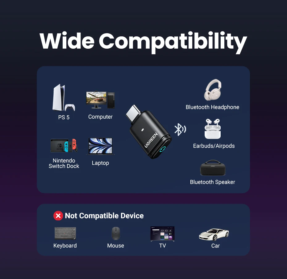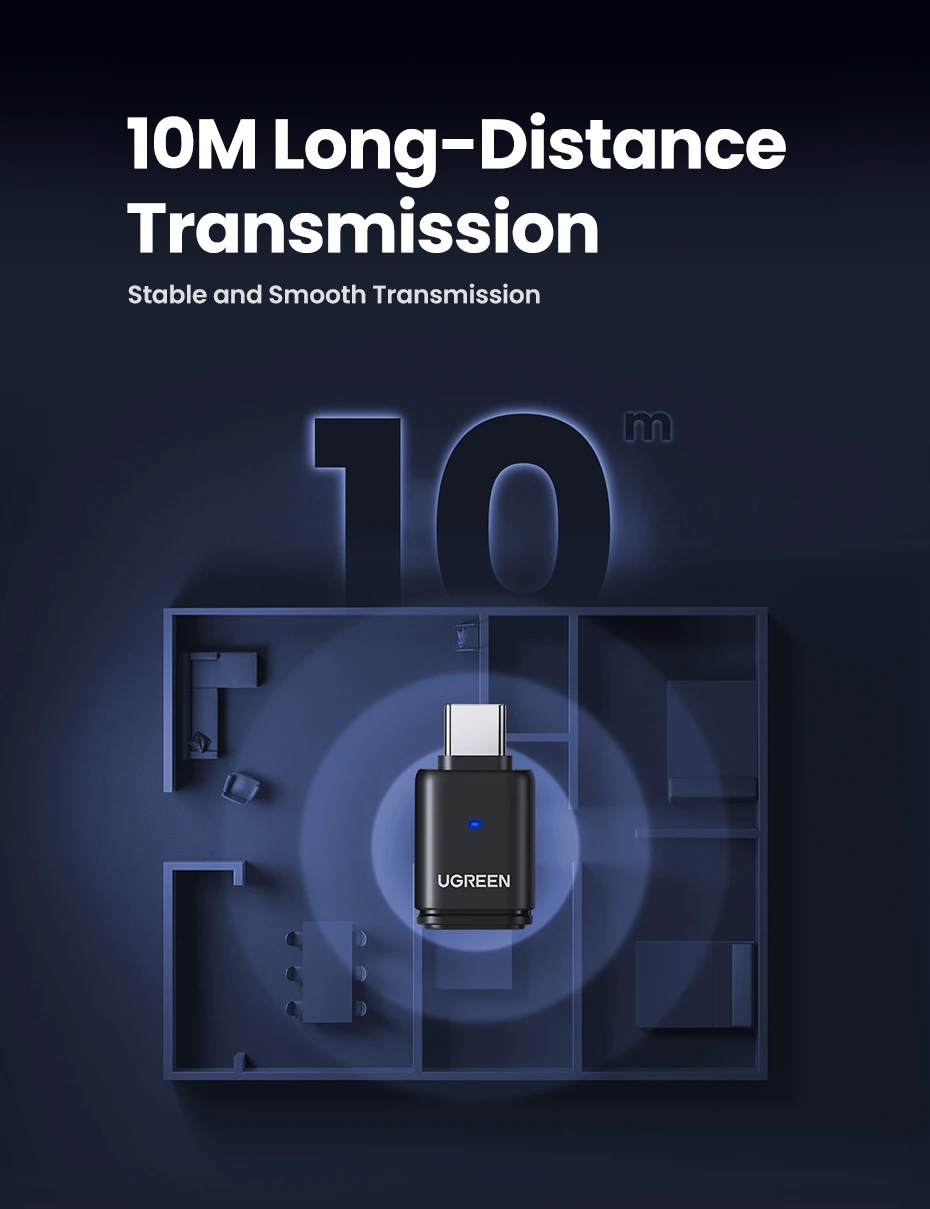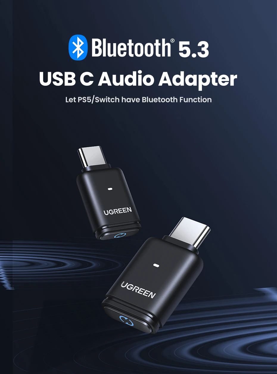 UGREEN-Adaptador de Audio aptX HD para PC Nintendo Switch, transmisor con Bluetooth 5,3, USB tipo C, micrófono y altavoz