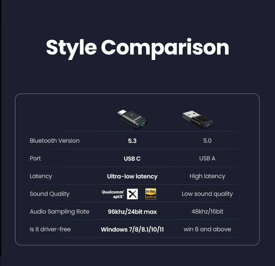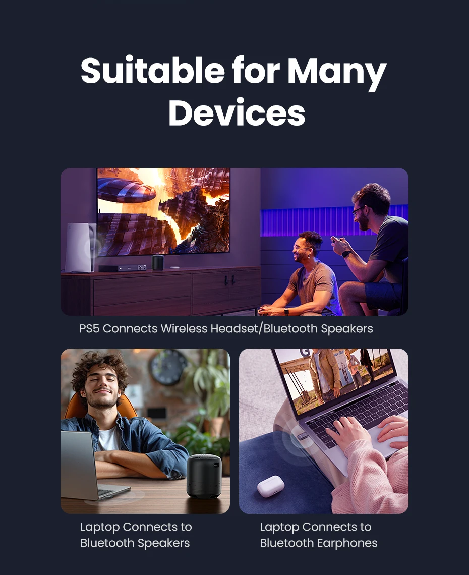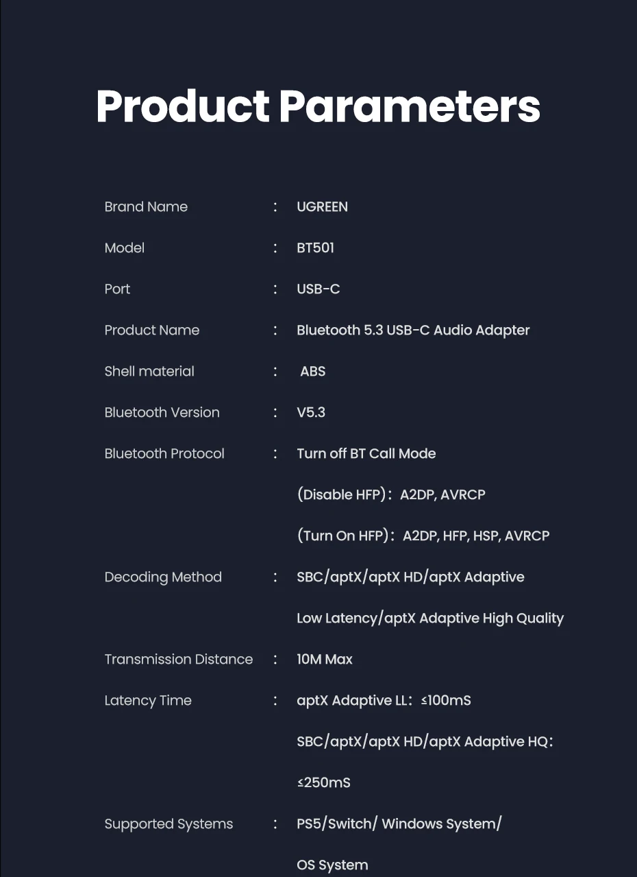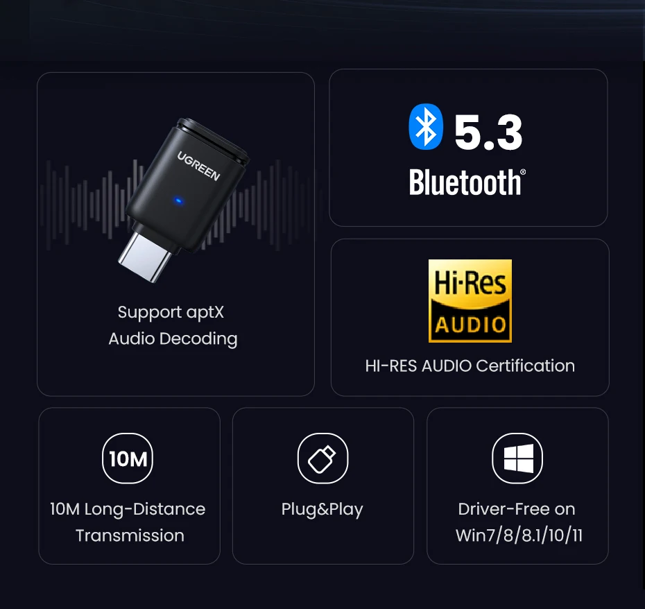 UGREEN-Adaptador de Audio aptX HD para PC Nintendo Switch, transmisor con Bluetooth 5,3, USB tipo C, micrófono y altavoz