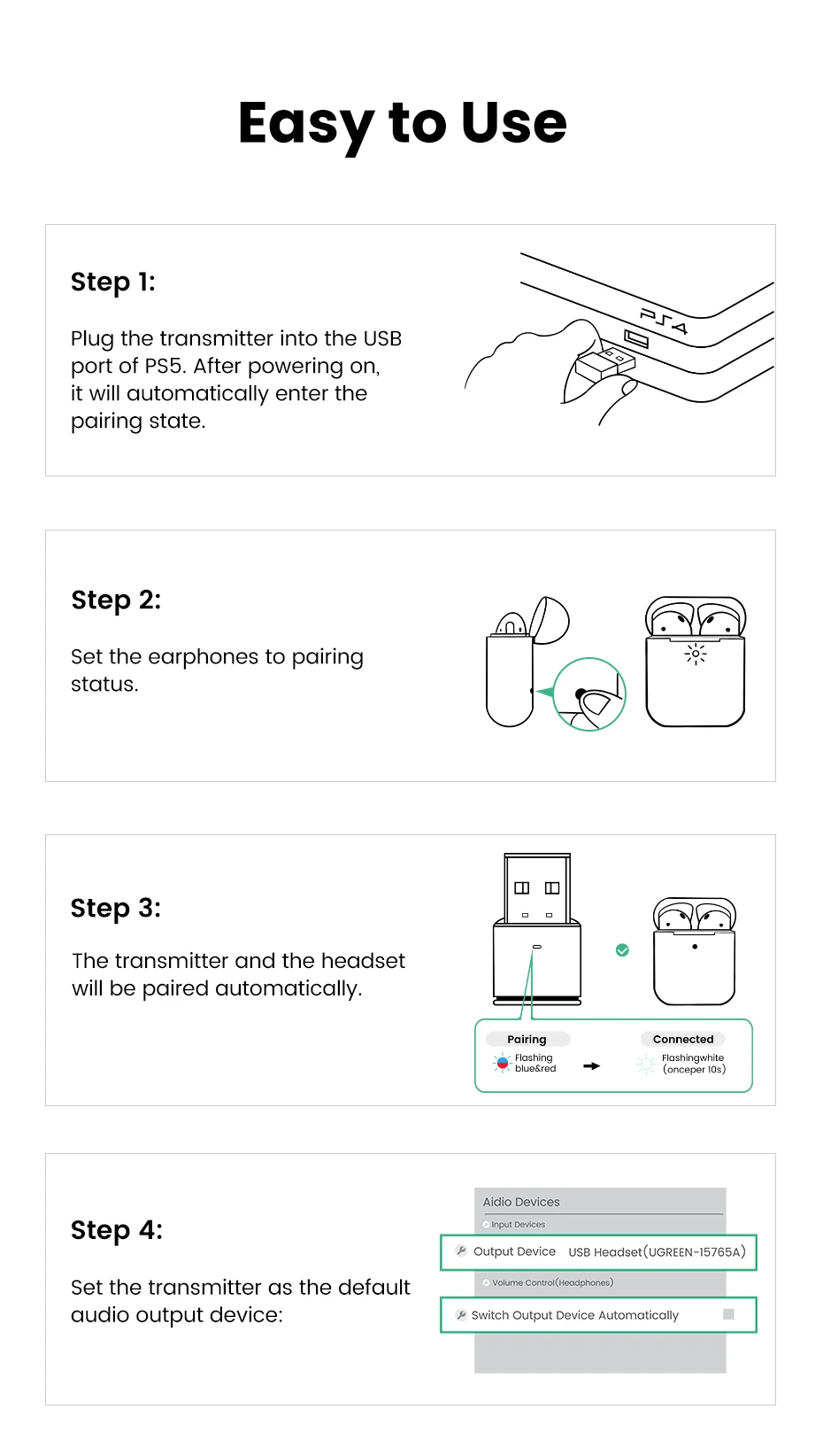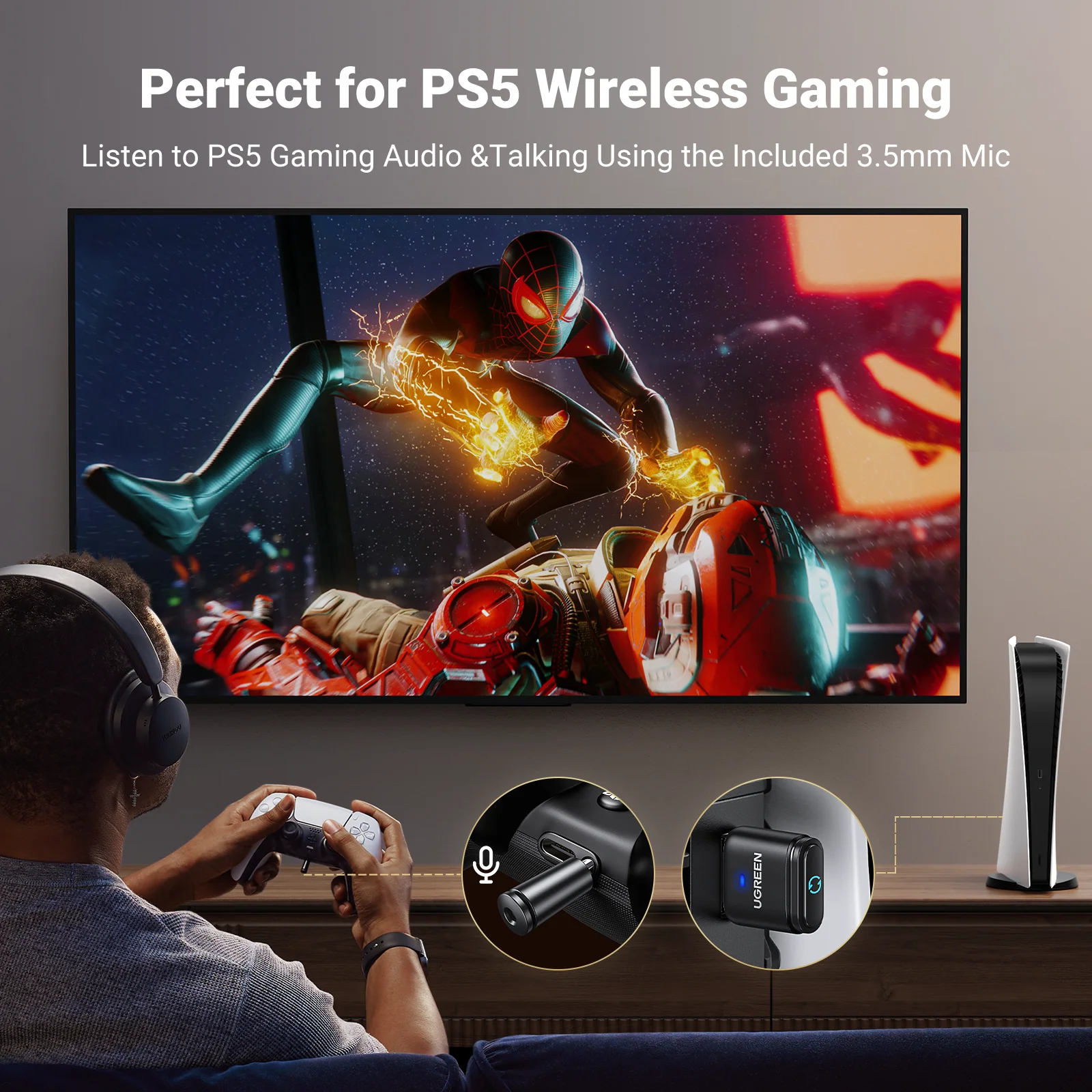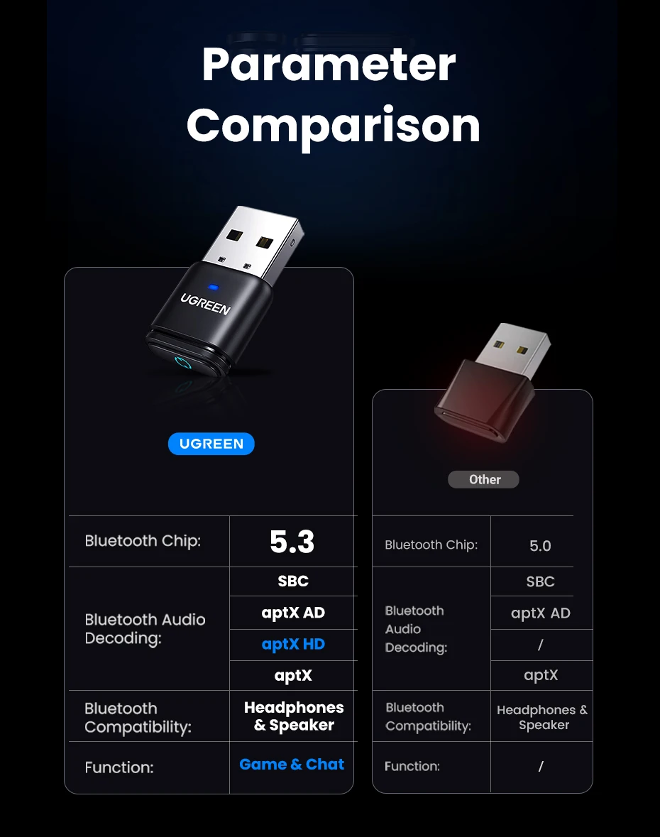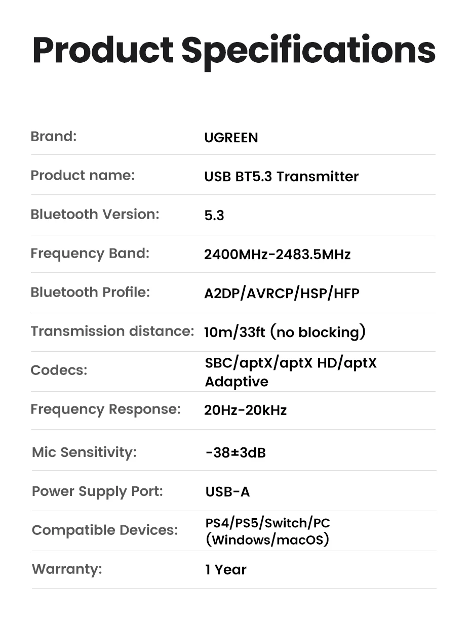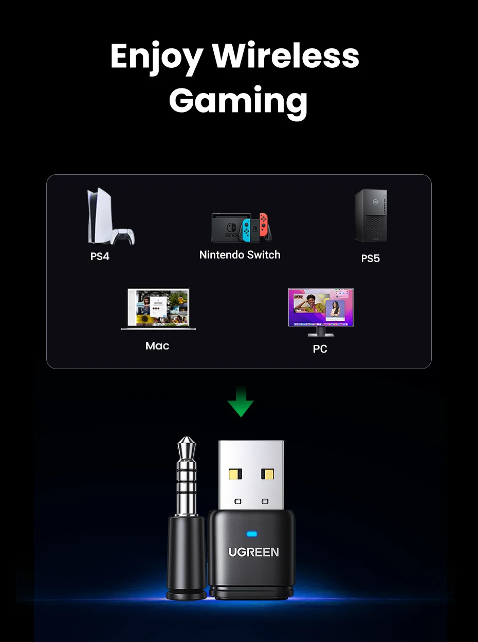 Comprar UGREEN-Adaptador de Audio para dispositivos electrónicos, transmisor con Bluetooth 5,3, USB, aptX, HD, AD, para PS5, PS4, Nintendo Switch, auriculares, altavoz, micrófono, receptor Bluetooth