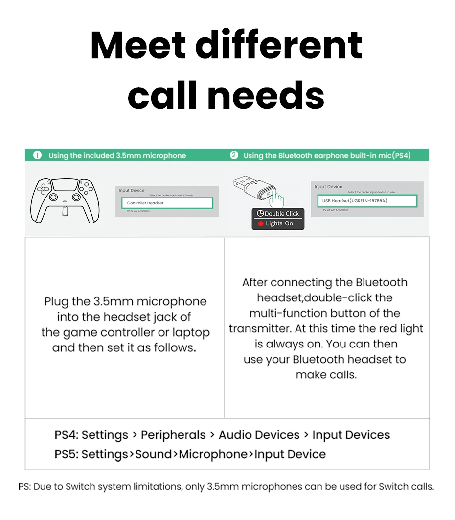 Si necesita hablar en el juego y la reunión, puede elegir el micrófono de 3,5mm o el micrófono de auriculares Bluetooth para llamadas de voz de acuerdo con la escena.