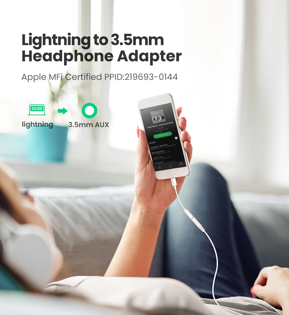 Comprar UGREEN-Adaptador de auriculares con certificado MFi, convertidor Lightning a Jack de 3,5mm para iPhone SE/11/11 Pro Max/X XR XS Max