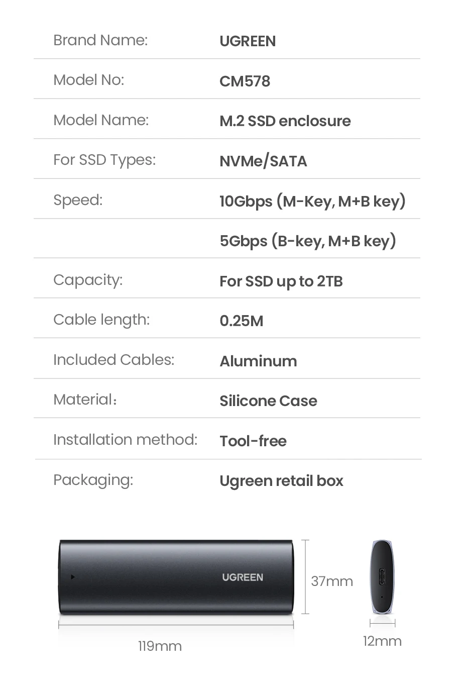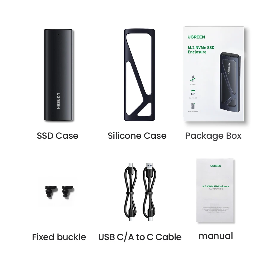 Comprar UGREEN-Adaptador de carcasa SSD M.2 NVMe, carcasa externa sin herramientas, lector NVMe, 10gbps, USB C, 3,2 Gen2, compatible con llaves M, B y M