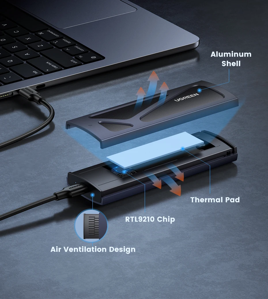 √ Velocidad de transferencia de 10Gbps √Aleación de aluminio √ Instalación sin herramientas