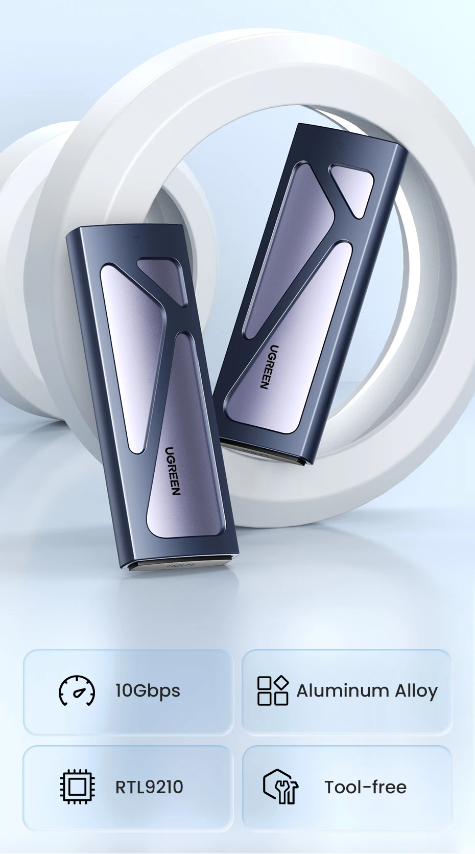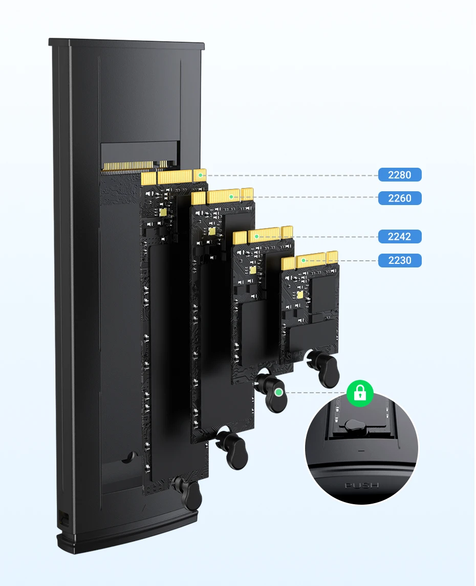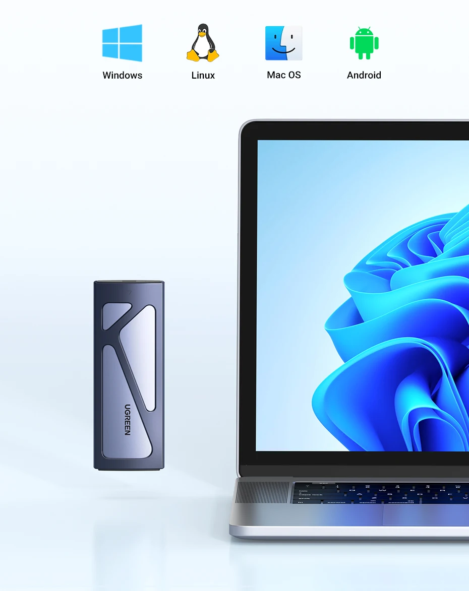 NVMe reader adopts advanced RTL9210 chip, built with short-circuit, over-current and multi-protection