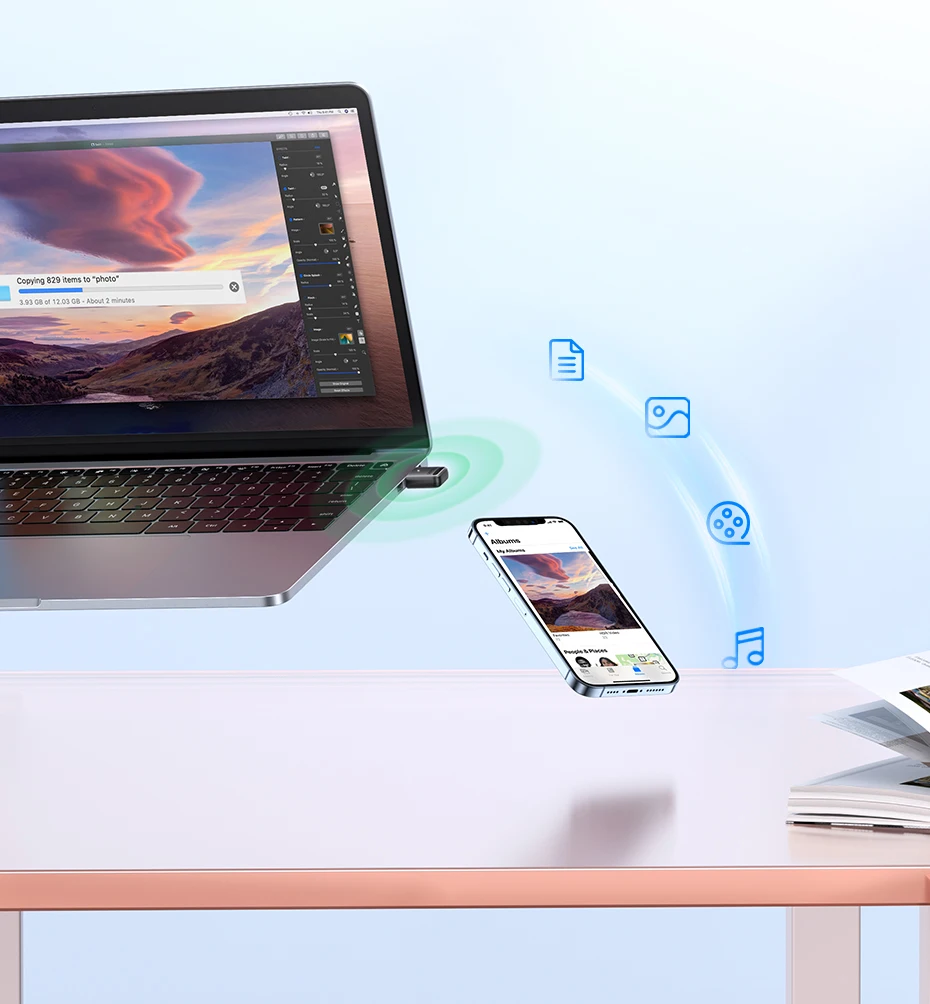 Consejos:Conecte 5 dispositivos de forma inalámbrica a través del dongle Bluetooth 5.0 al mismo tiempo, pero la música transmite a solo 1 dispositivo de audio a la vez.