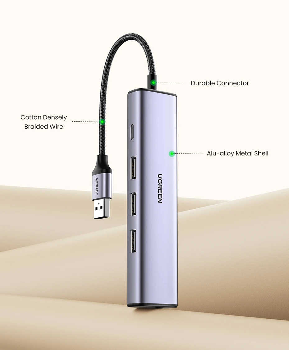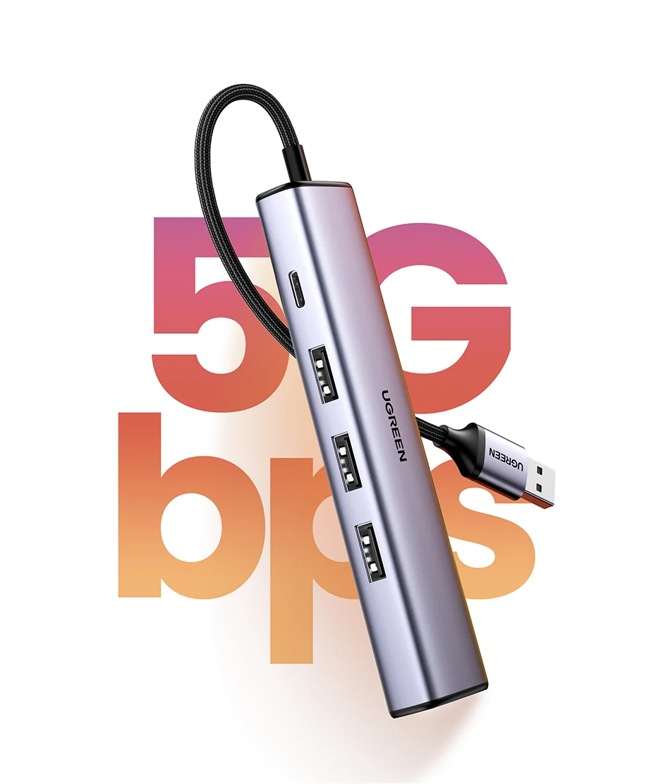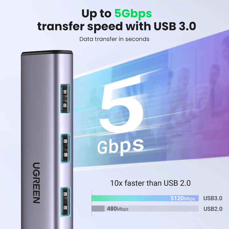 Este producto puede simplemente ayudar a su dispositivo a conectar más accesorios como mouse, teclado, unidad externa, HDD, impresora y más. Y la sincronización de datos de USB3.0 puede hasta 5Gbps, que es 10 veces más rápido que USB2.0.