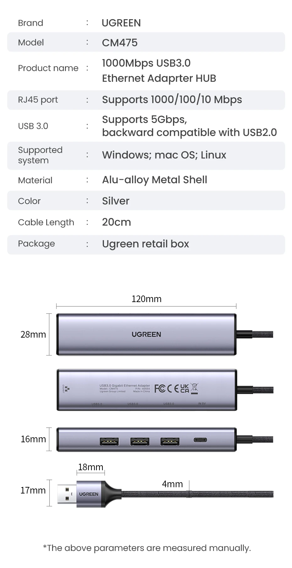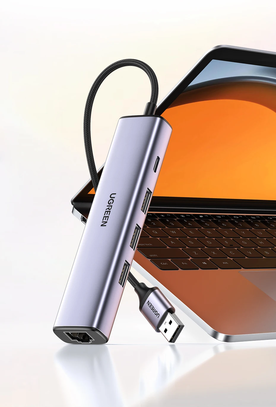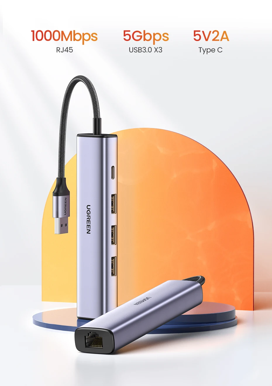 1000Mbps USB3.0 Ethernet Adapter HUB✔1000Mbps RJ45 ✔5Gbps ✔USB3.0 Ports*3