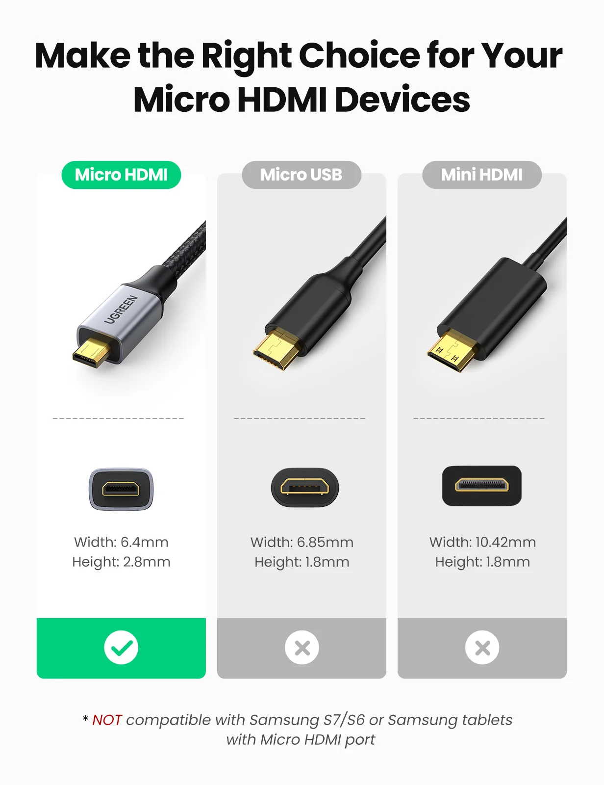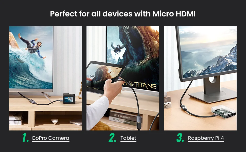 Comprar UGREEN-adaptador Micro HDMI a HDMI 4K/60Hz 3D, Micro HDMI a HDMI para GoPro Hero 7, Raspberry Pi 4, Sony, Nikon, Cable HDMI trenzado