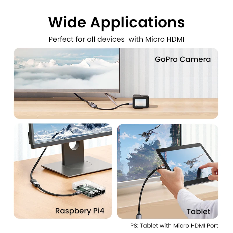 Comprar UGREEN-adaptador Micro HDMI a HDMI 4K/60Hz 3D, Micro HDMI a HDMI para GoPro Hero 7, Raspberry Pi 4, Sony, Nikon, Cable HDMI trenzado