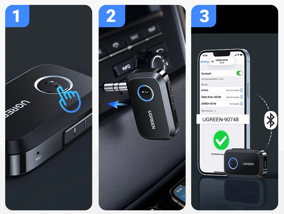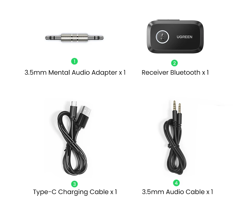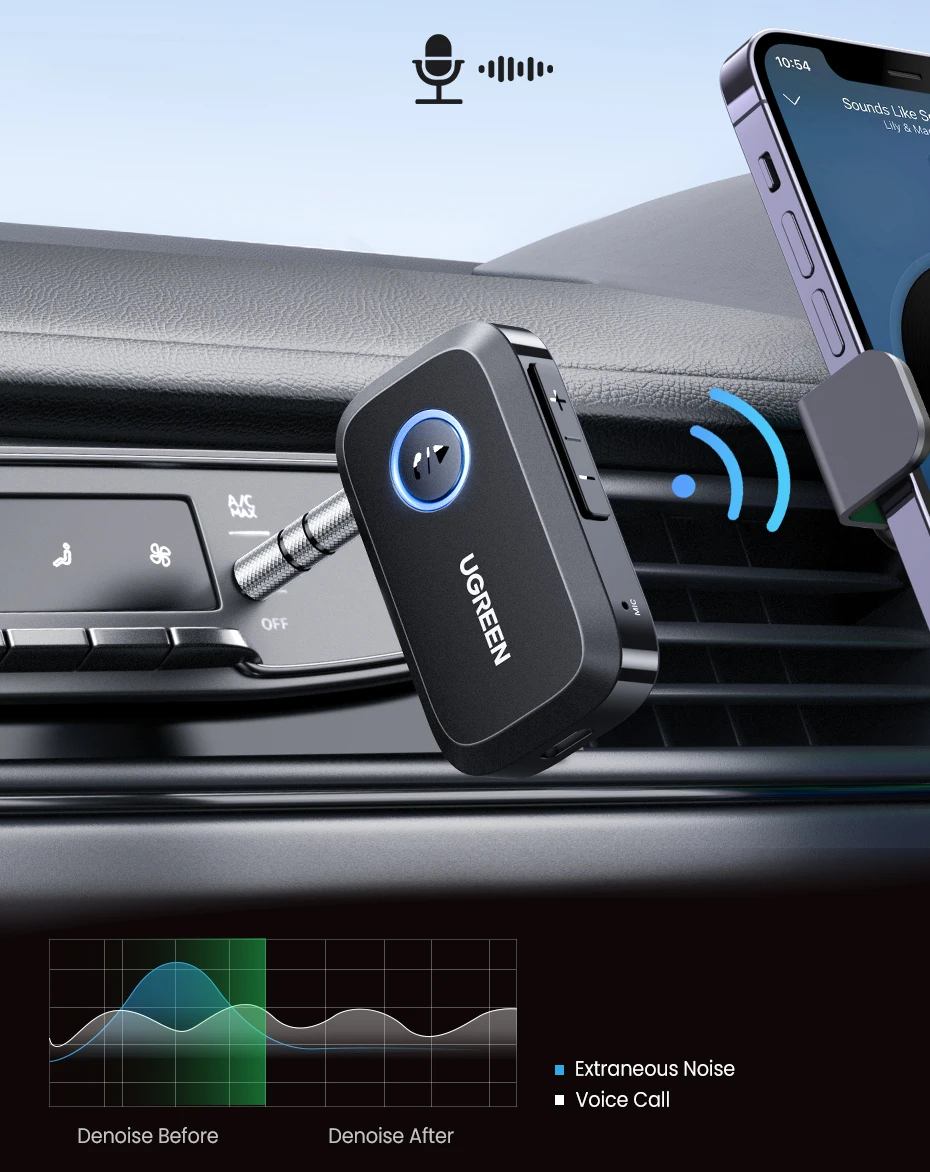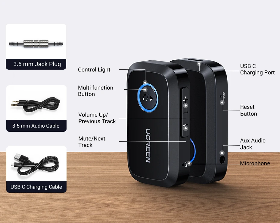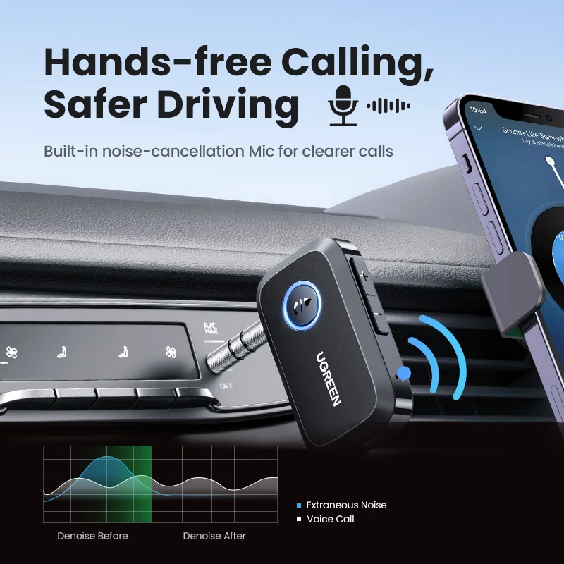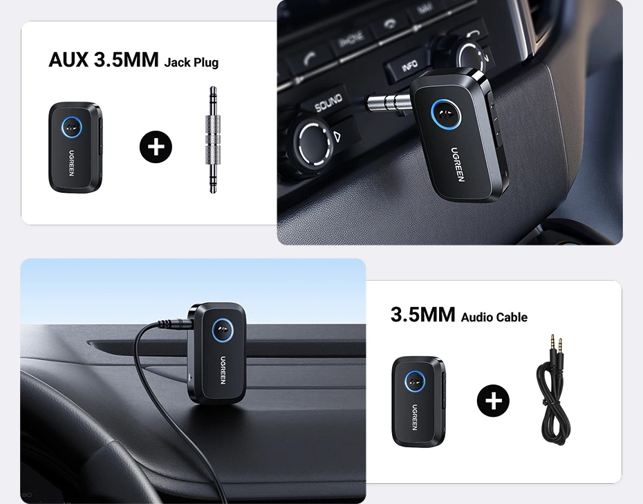 Comprar UGREEN-Adaptador de receptor de coche con Bluetooth 3,5, conector auxiliar de 5,3mm para altavoces de coche, receptor de Audio y música, manos libres