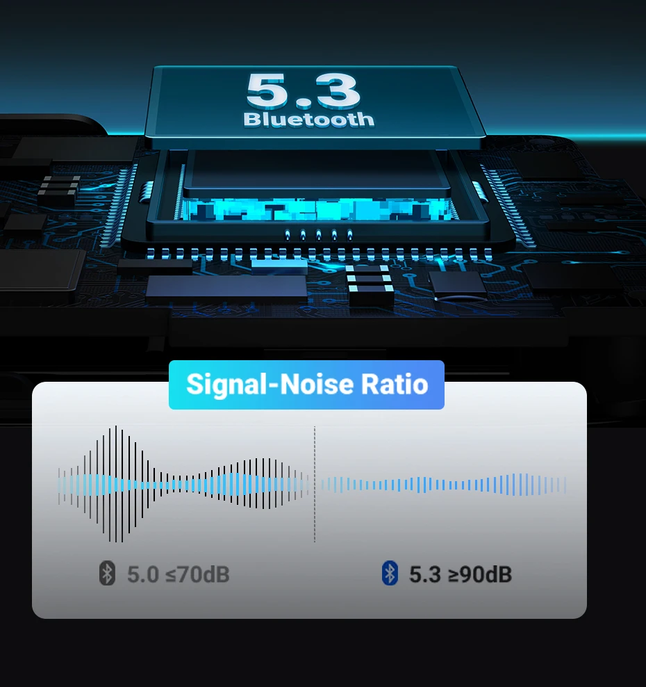 Utiliza el último chip Bluetooth 5,3, con el objetivo de proporcionar una velocidad de transmisión más rápida, mayor fiabilidad, estabilidad y menor consumo de energía; ofrece llamadas claras, ruido estático súper bajo y calidad de sonido de CD.