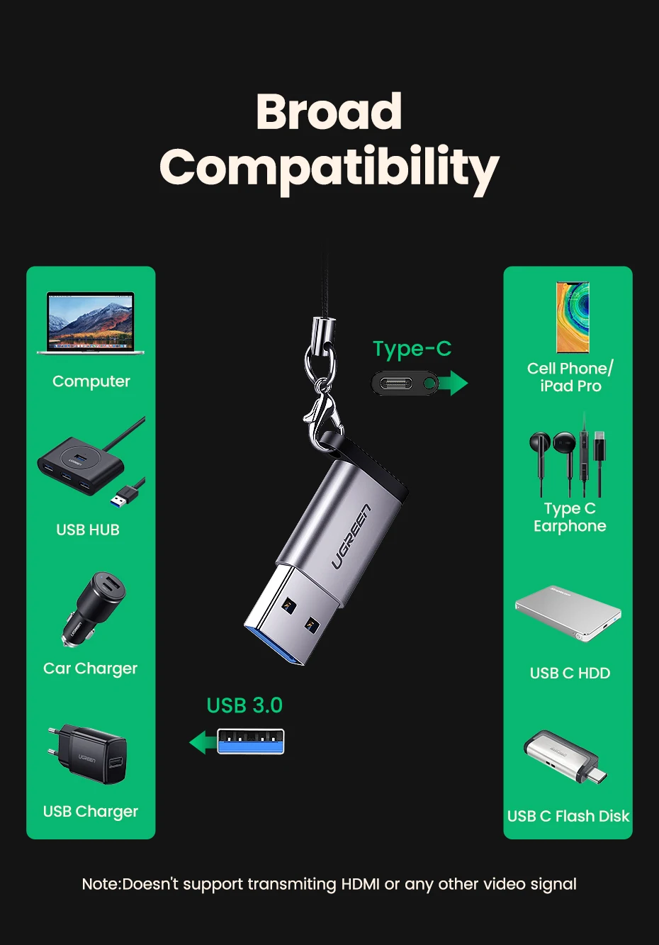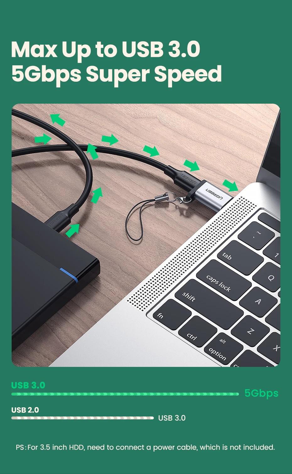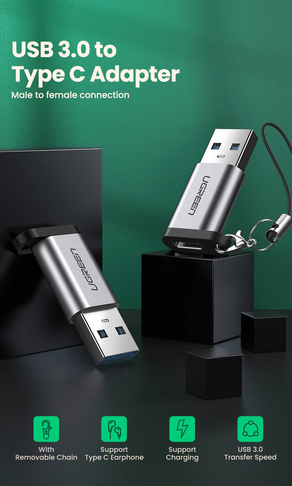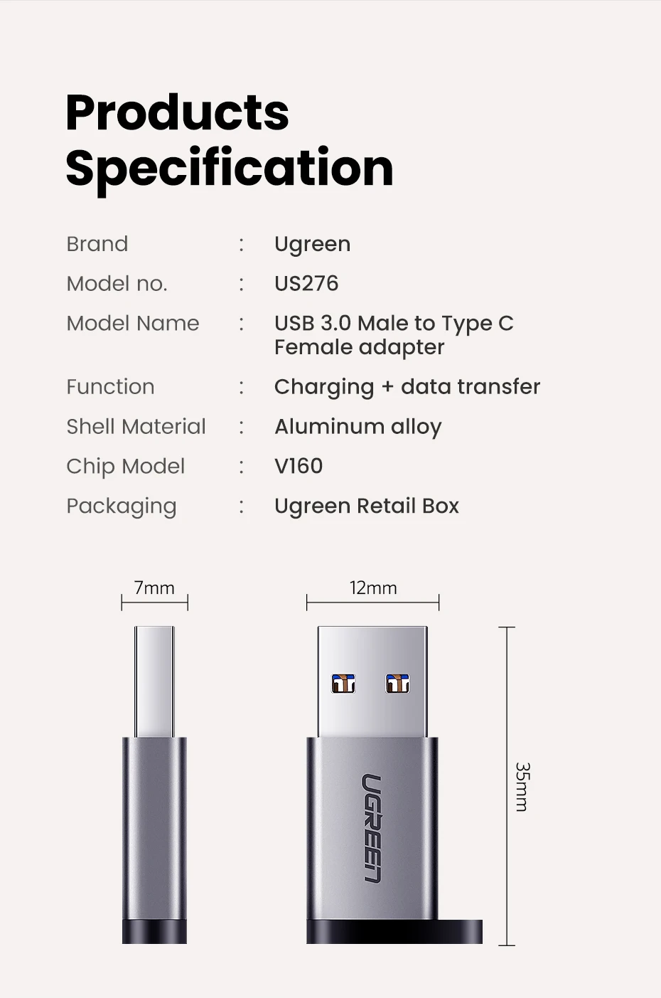 Comprar Ugreen-Adaptador USB 3,0 macho a USB tipo C, Micro hembra para ordenador portátil, Samsung, Xiaomi 10, auriculares