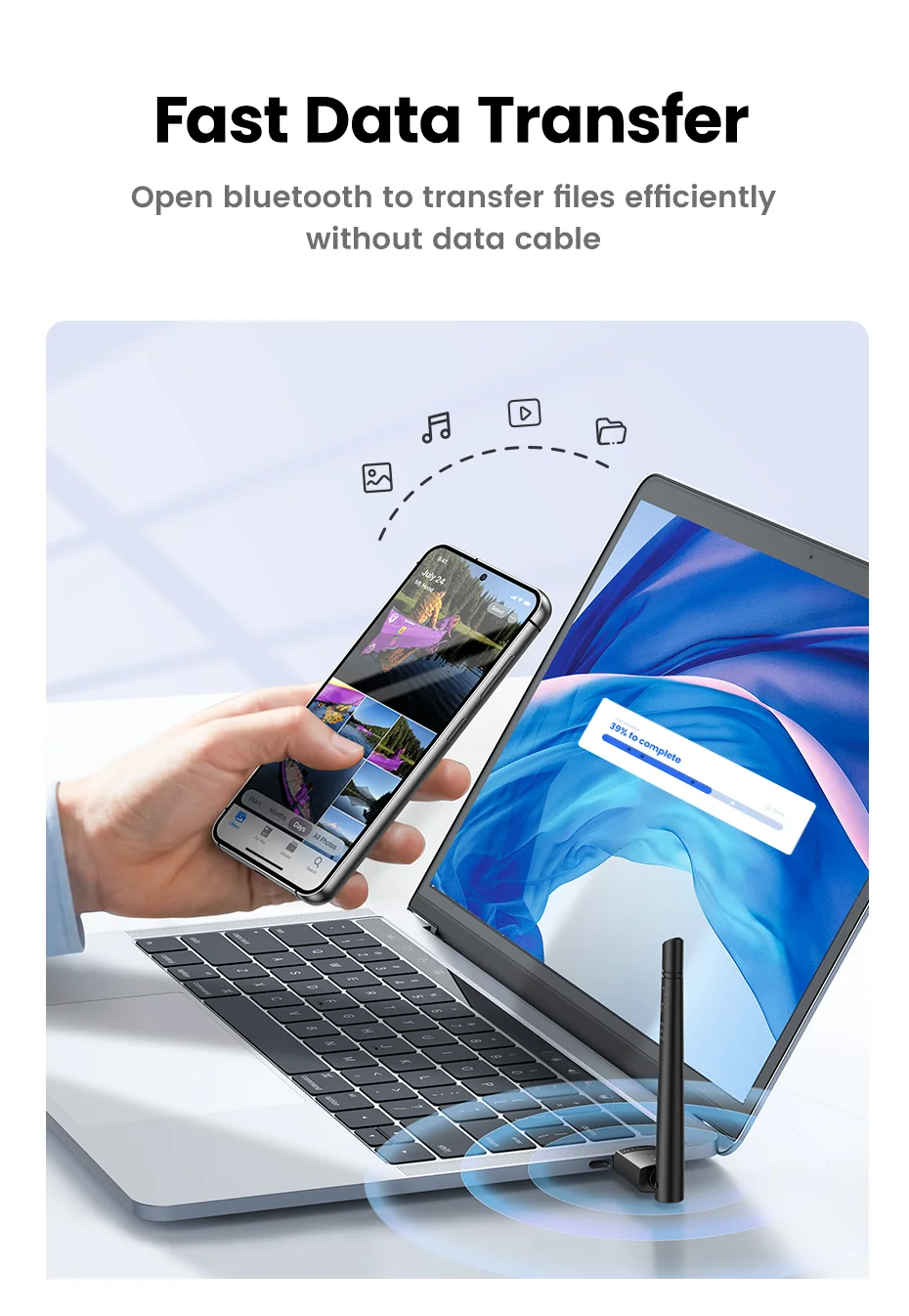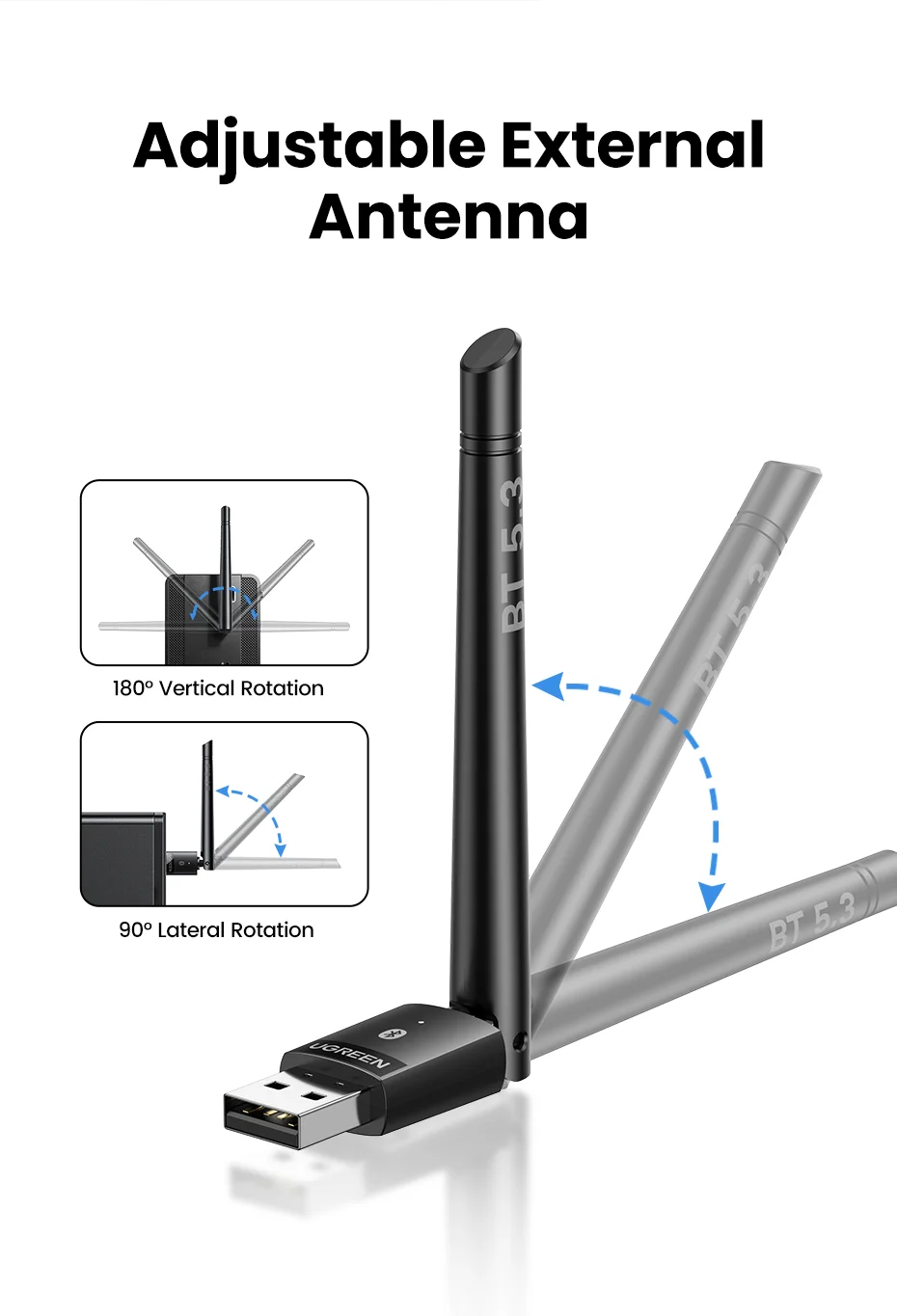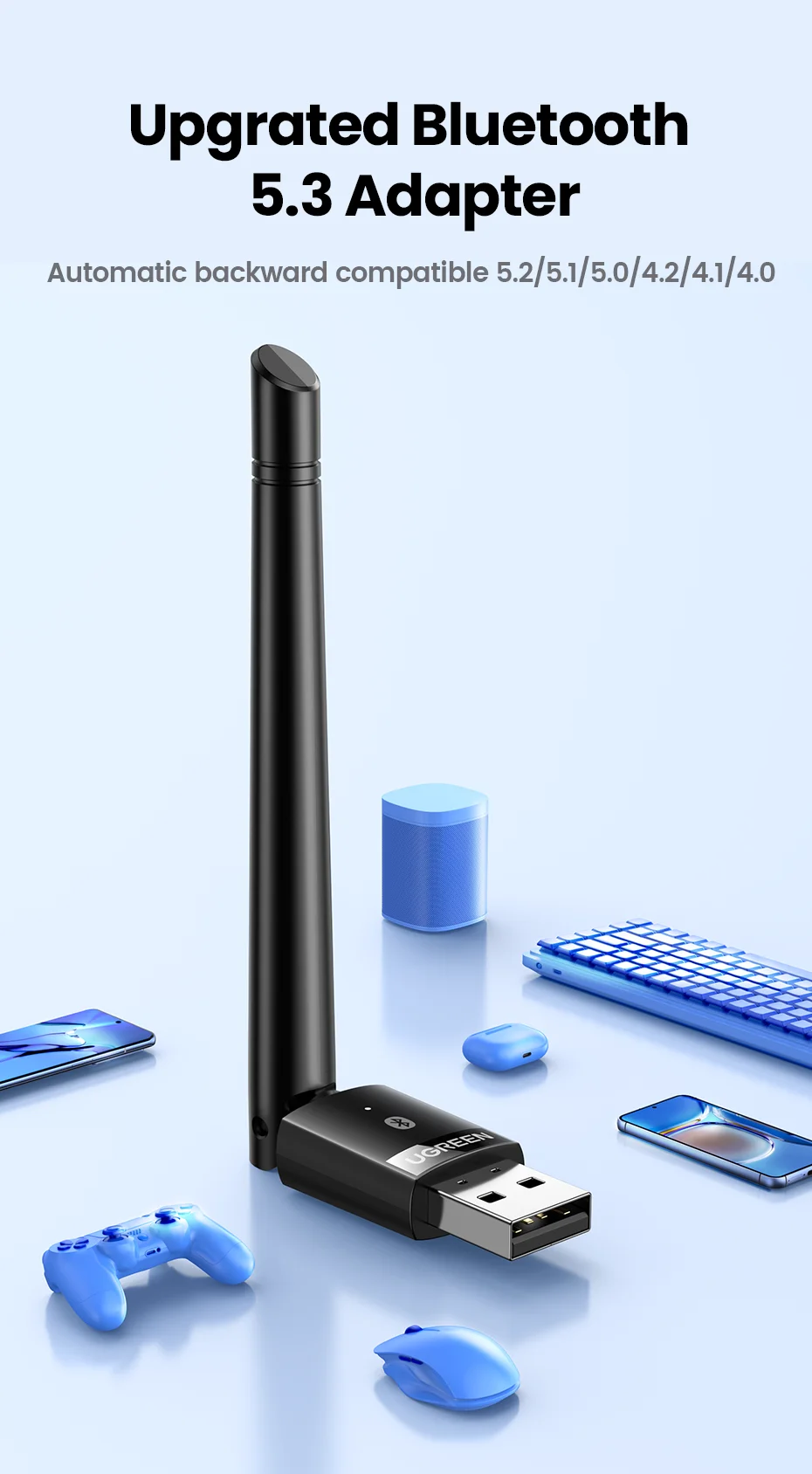 Comprar UGREEN-Adaptador USB Bluetooth 5,3 para PC, altavoz, ratón inalámbrico, teclado, música, receptor de Audio, transmisor, Dongle