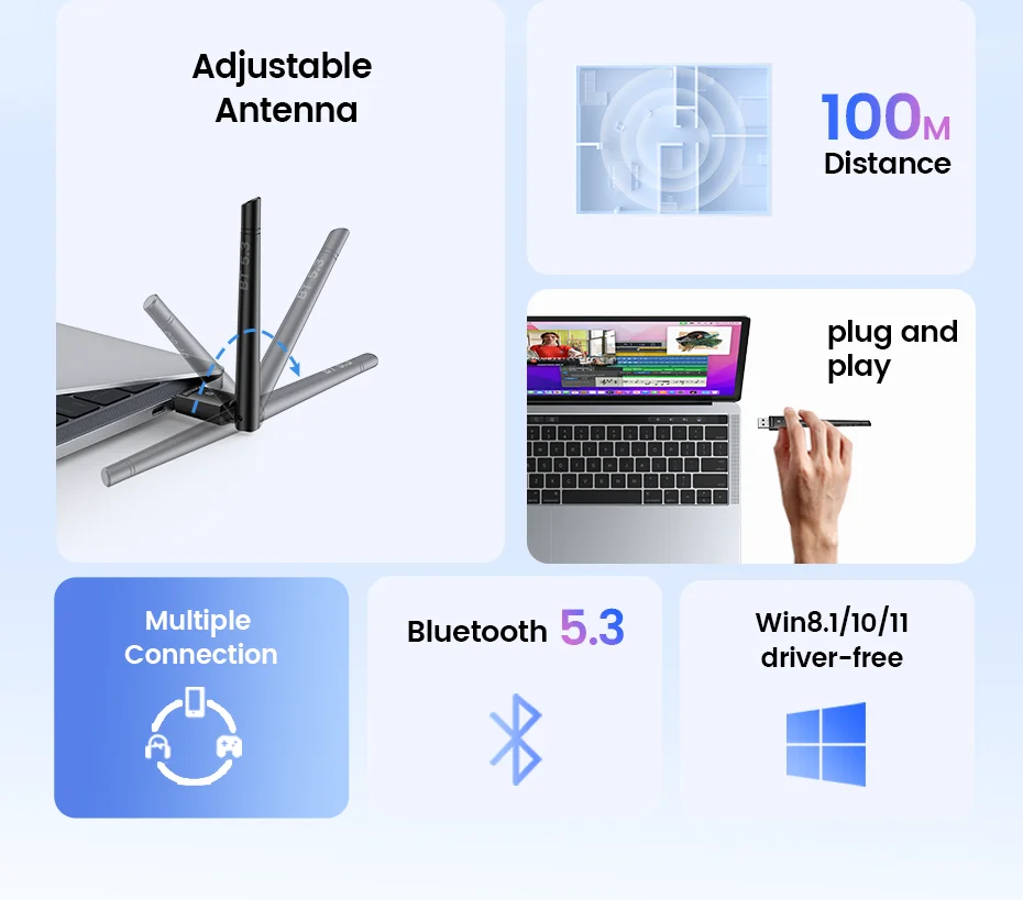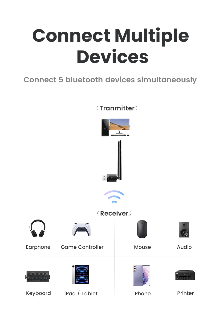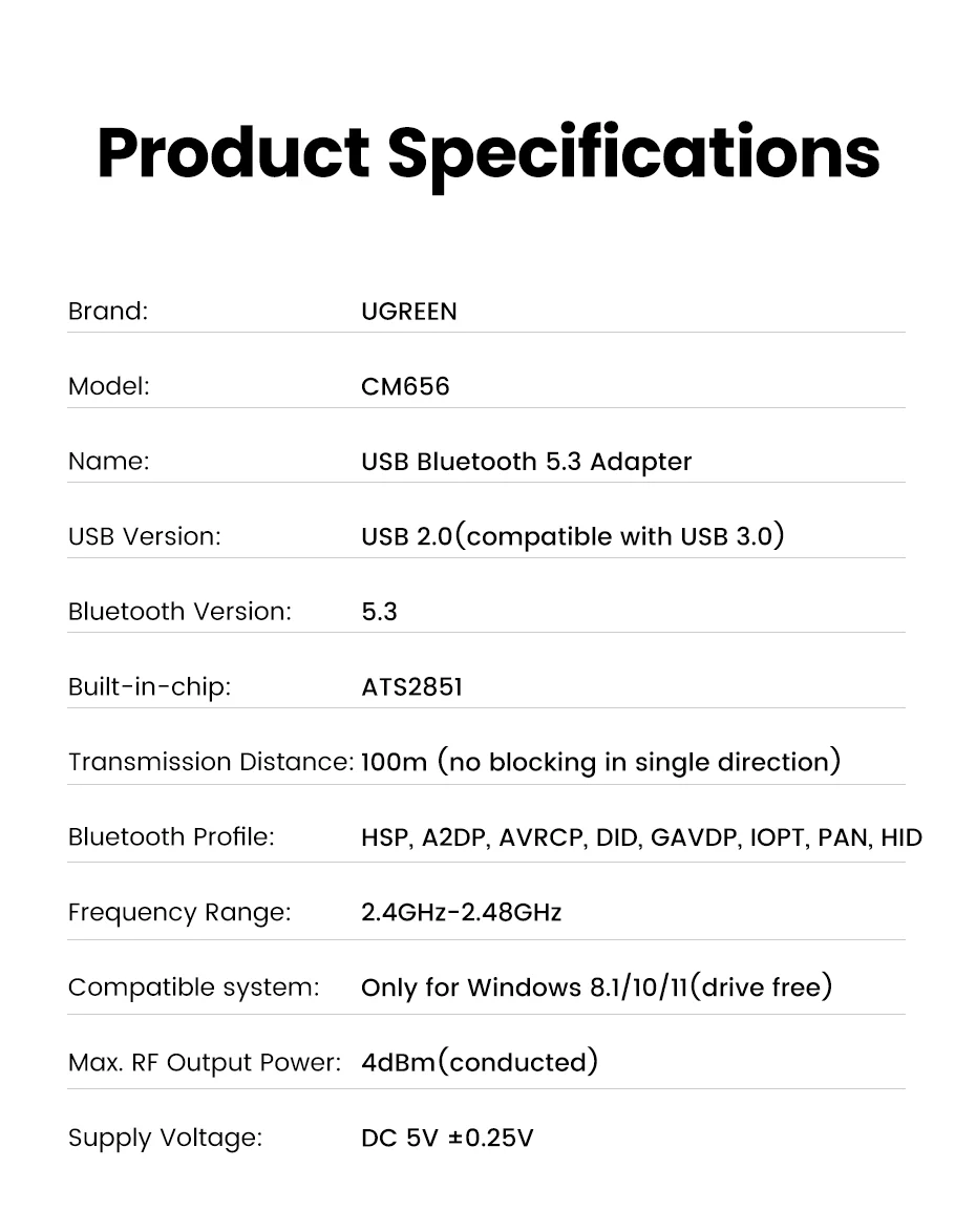 Comprar UGREEN-Adaptador USB Bluetooth 5,3 para PC, altavoz, ratón inalámbrico, teclado, música, receptor de Audio, transmisor, Dongle