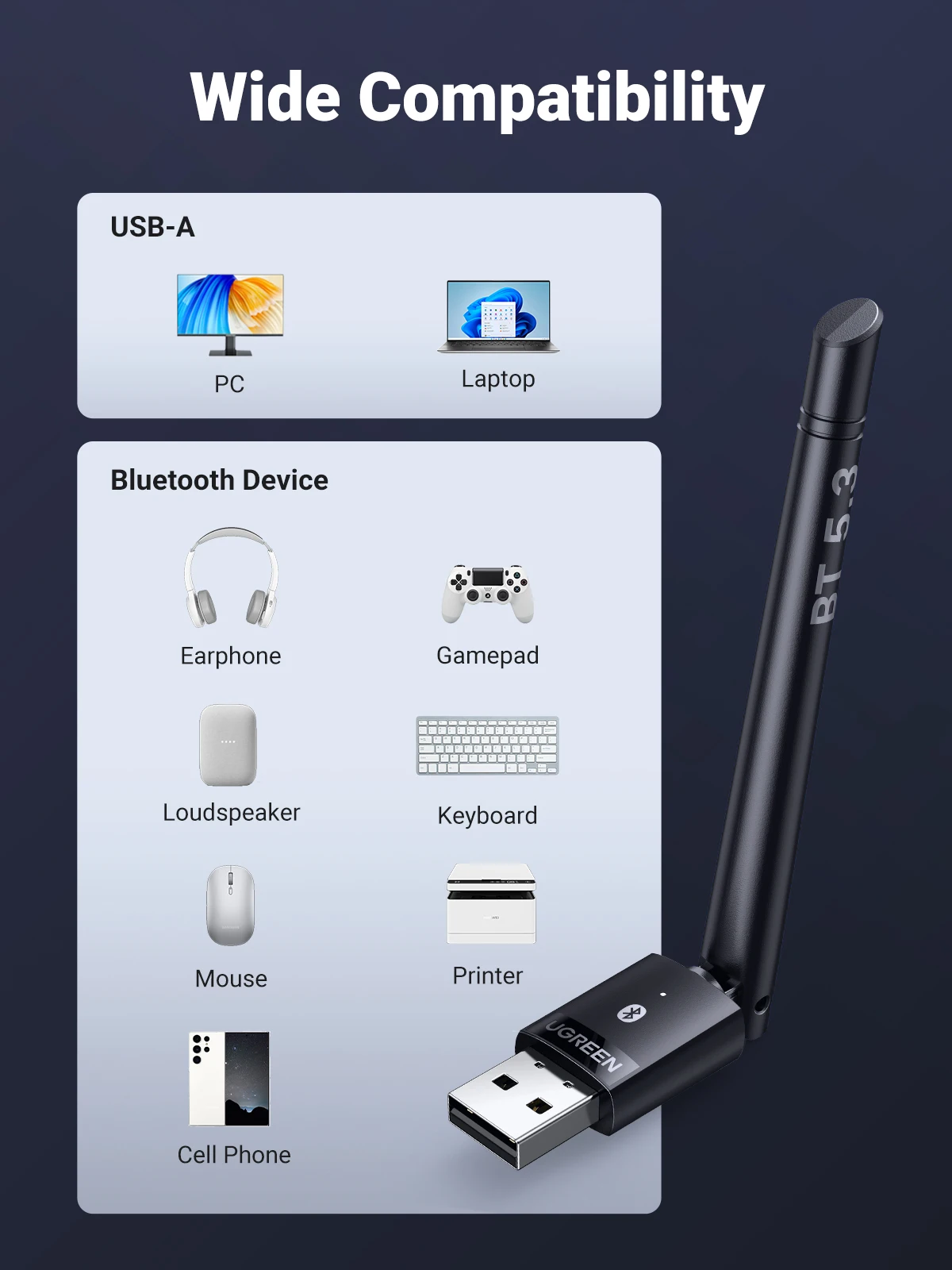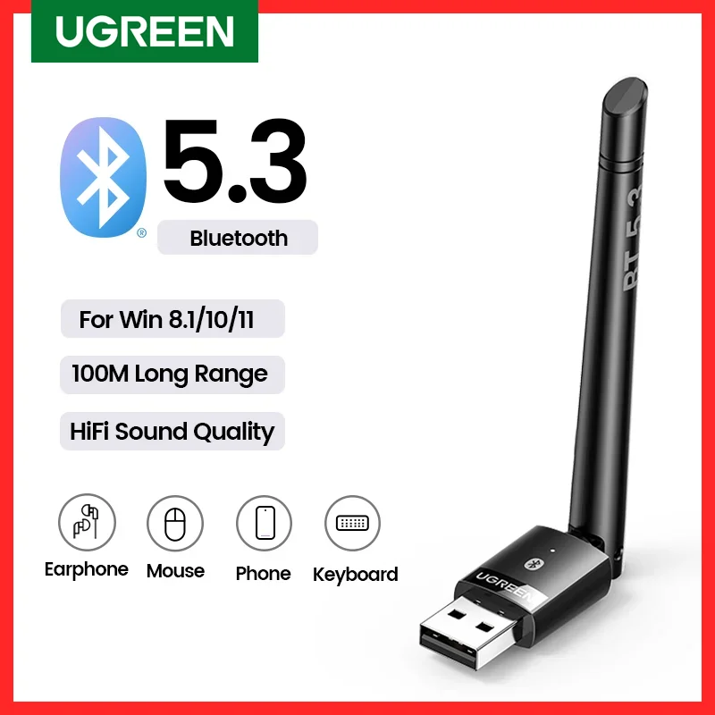 Comprar UGREEN-Adaptador USB Bluetooth 5,3 para PC, altavoz, ratón inalámbrico, teclado, música, receptor de Audio, transmisor, Dongle