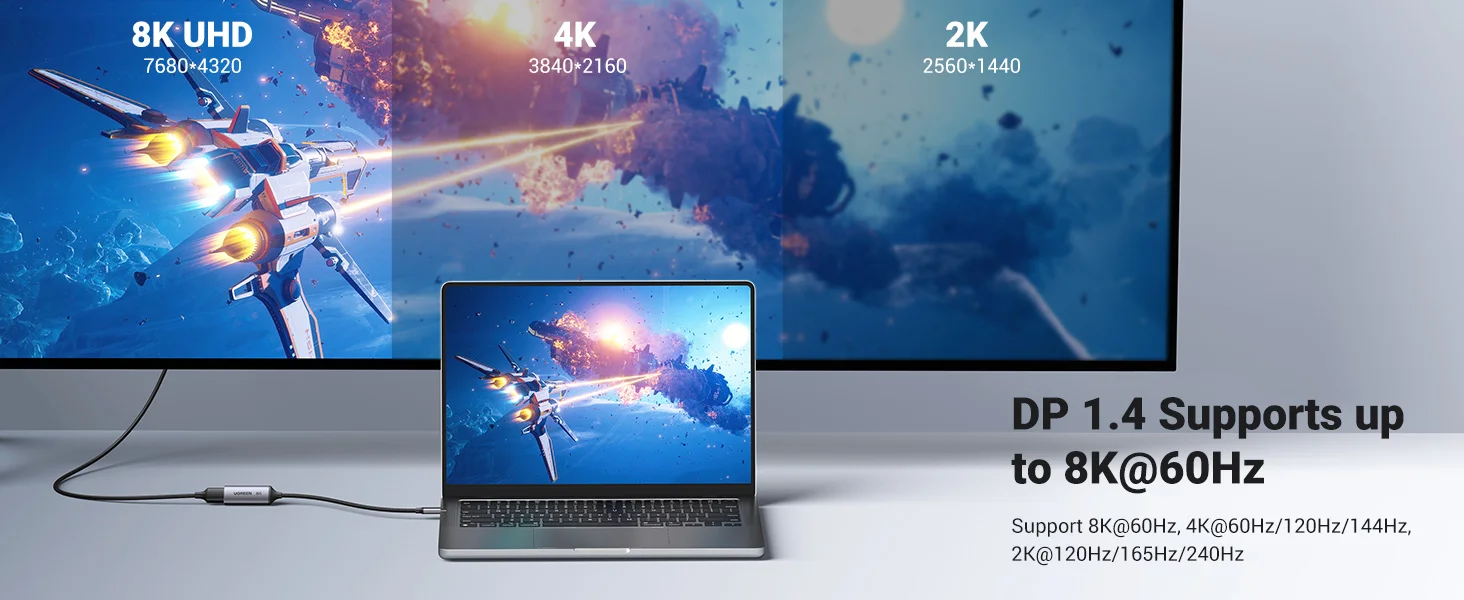 Comprar UGREEN-Adaptador USB C a 8K Displayport 1,4, Cable adaptador para iPhone 15, Macbook Pro, iPad, USB tipo C a 8K DP1.4, 32,4 Gbps, 8K/60Hz