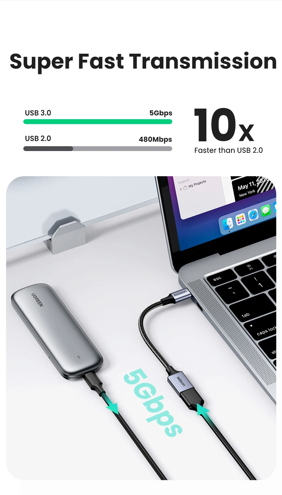 Admite velocidad de transferencia de datos USB 3.0 de alta velocidad de hasta 5 Gbps - 10 veces más rápida