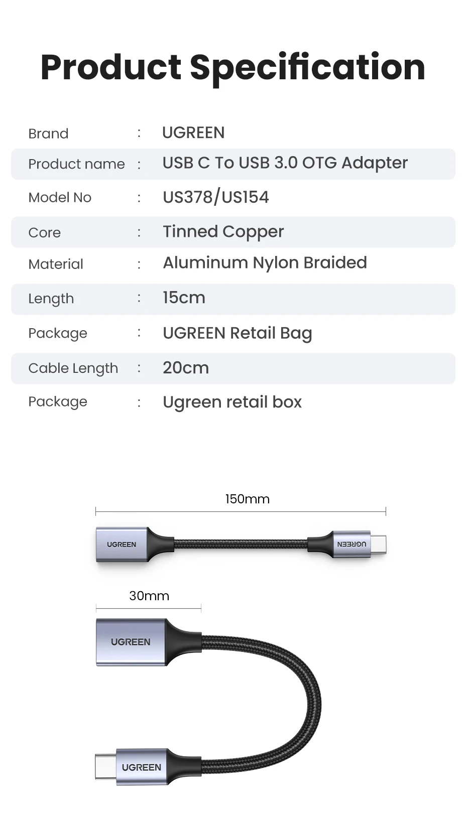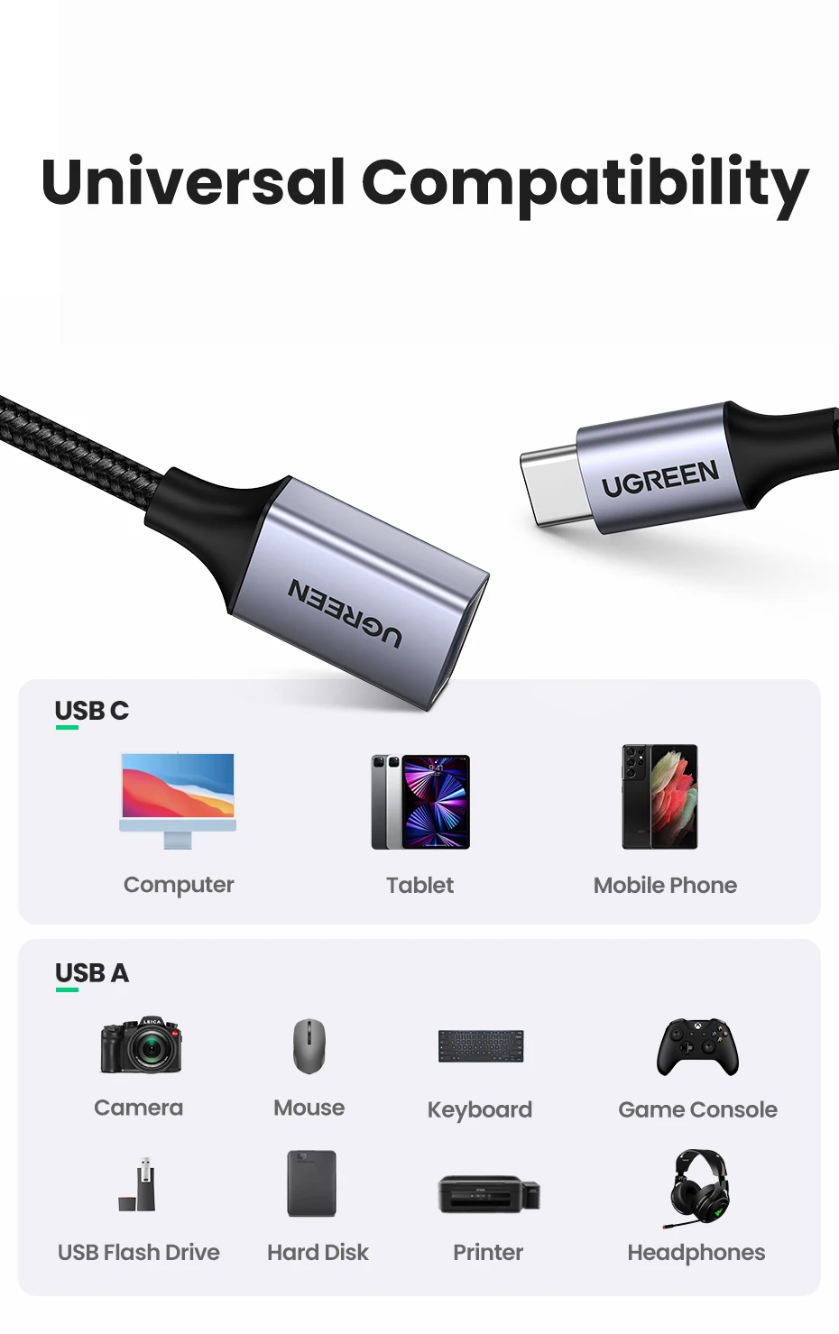 Comprar UGREEN-Adaptador USB tipo C a USB 3,0, Cable de datos OTG, conector para Samsung Galaxy 10, MacBook Pro 2019