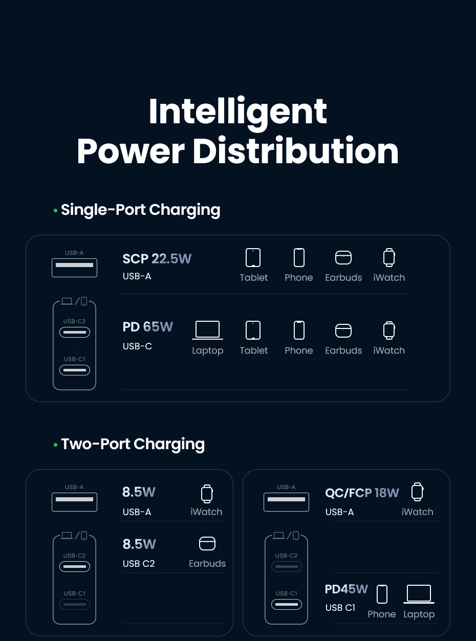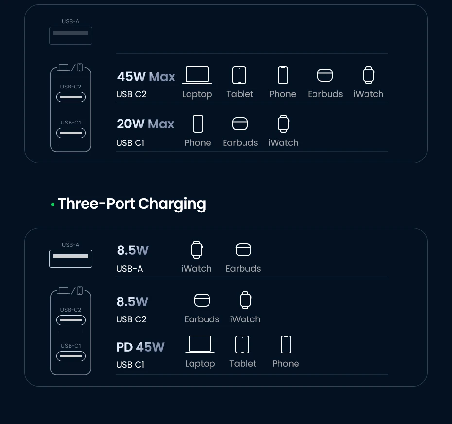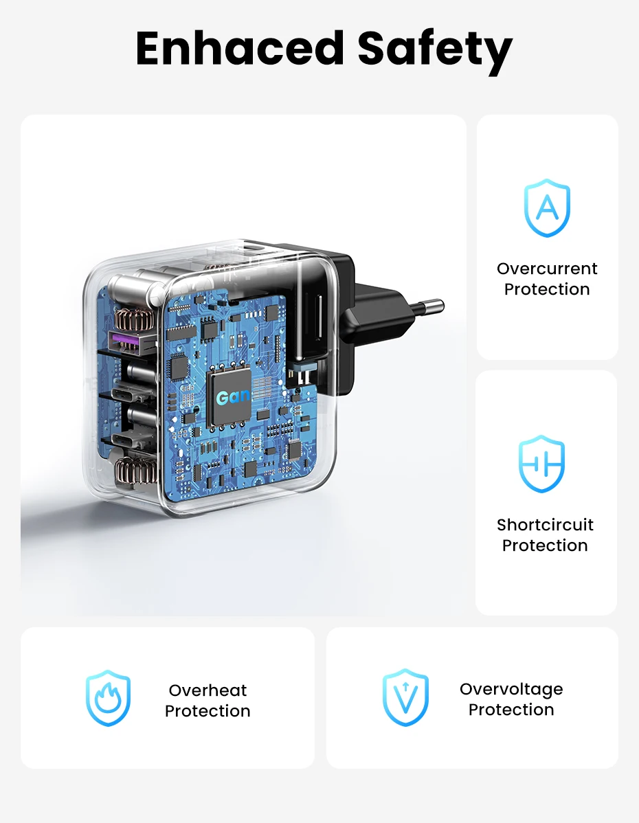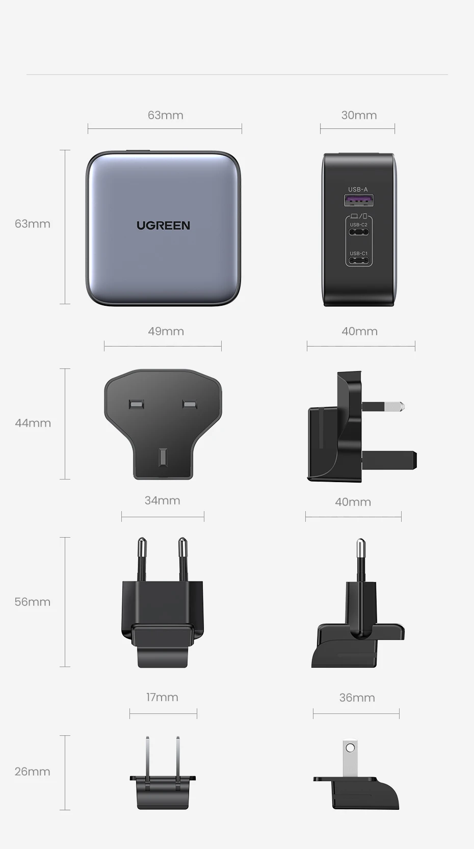 Lo compré porque viajo harto y, además, compré una batería Ugreen. Excelente combinación, puedo utilizar múltiples entradas para cargar 3 dispositivos (considerar que si se hace todo simlutáneo la potencia y velocidad de carga disminuye). Lo que me hizo elegir este en particular fue la fácil forma de cambiar el adaptador de corriente, a fin de viajar cómodo sin tener que preocuparme por más aparatos.