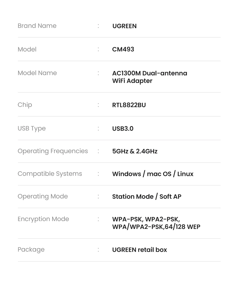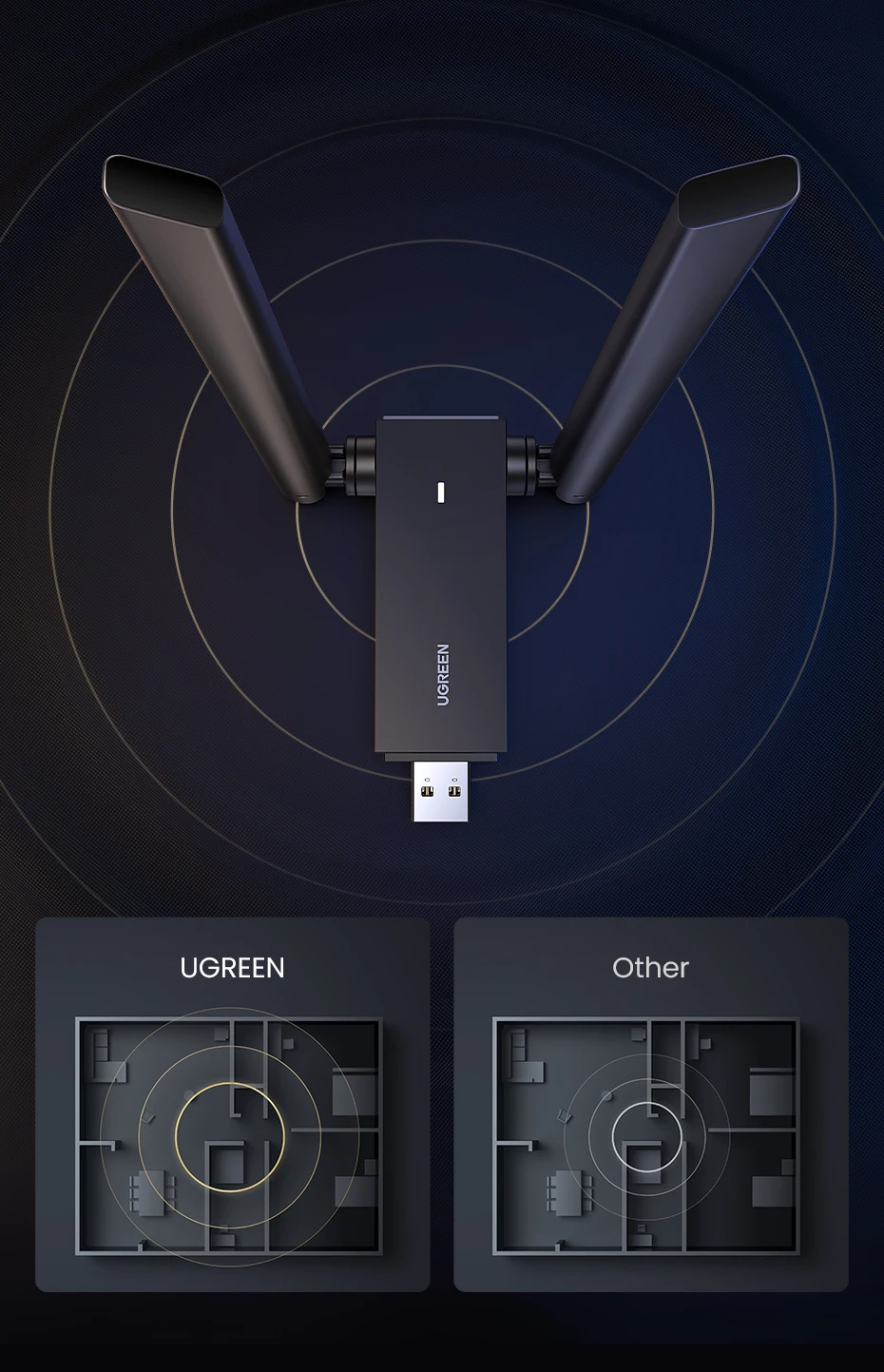 Comprar UGREEN-adaptador WiFi AC1300 USB3.0, antena Dual de 5GHz y 2,4 GHz, USB, para PC, escritorio y portátil
