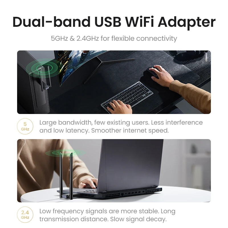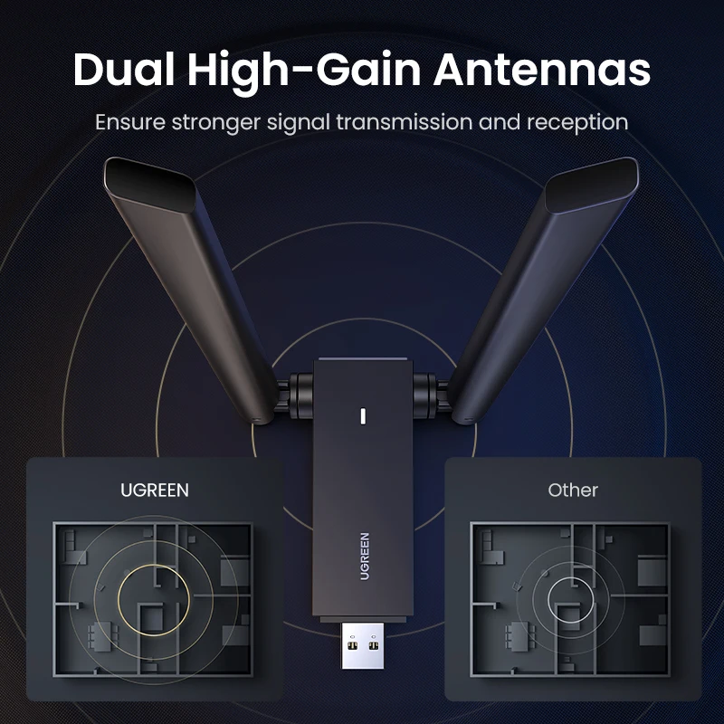 Comprar UGREEN-adaptador WiFi AC1300 USB3.0, antena Dual de 5GHz y 2,4 GHz, USB, para PC, escritorio y portátil