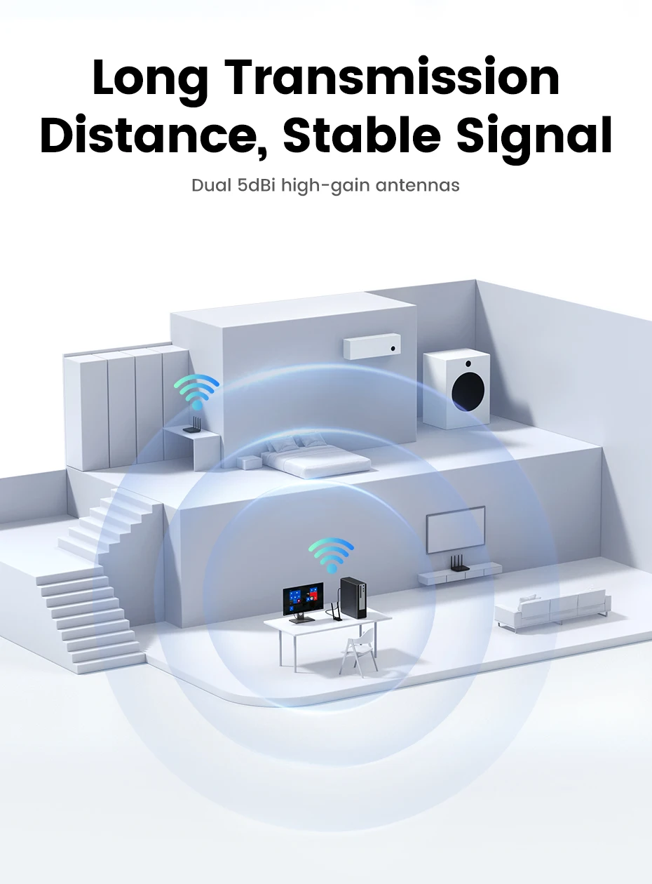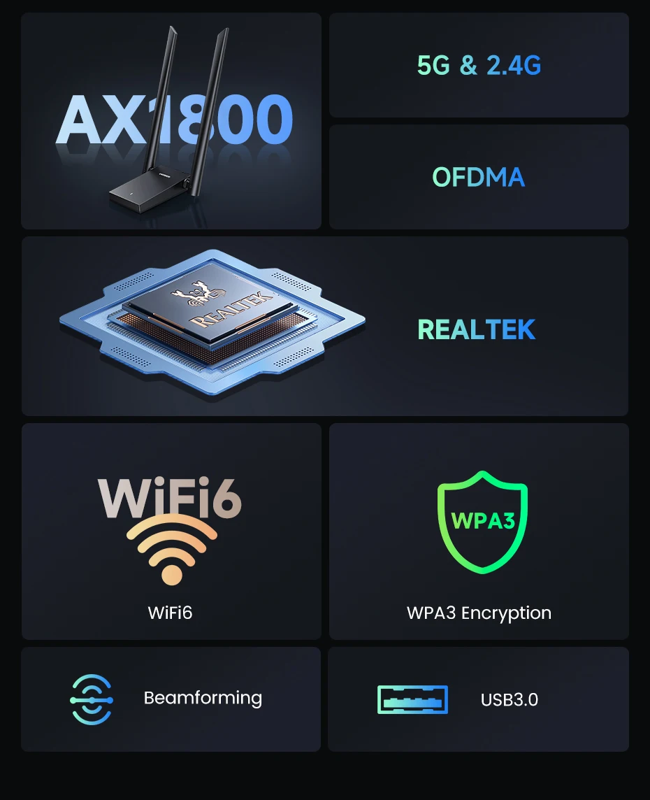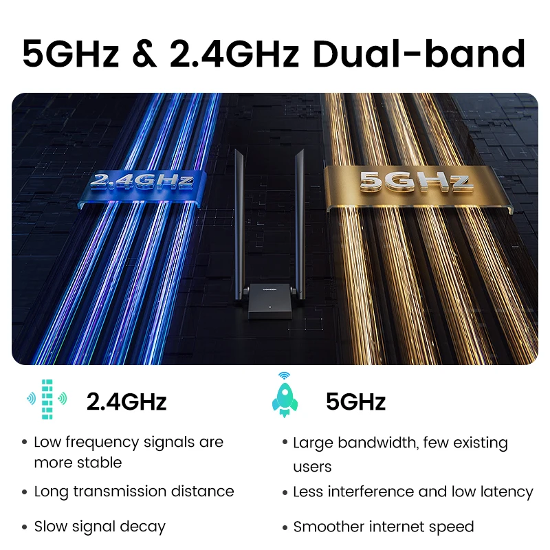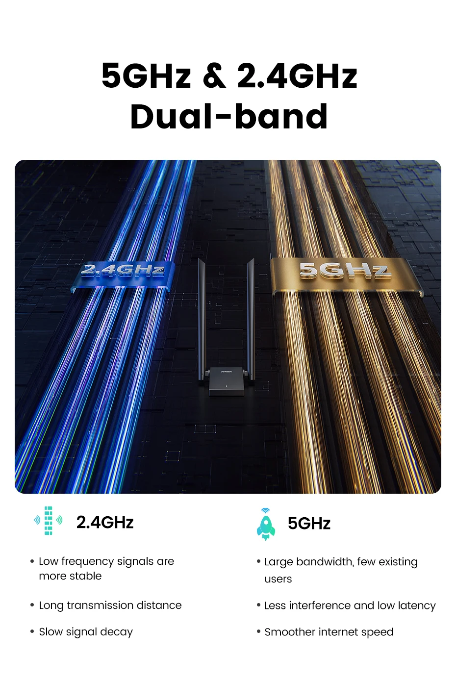 Comprar UGREEN-adaptador WiFi AX1800 para PC y ordenador portátil, dispositivo con antena USB 3,0, 5G y 2,4G, receptor de red Ethernet